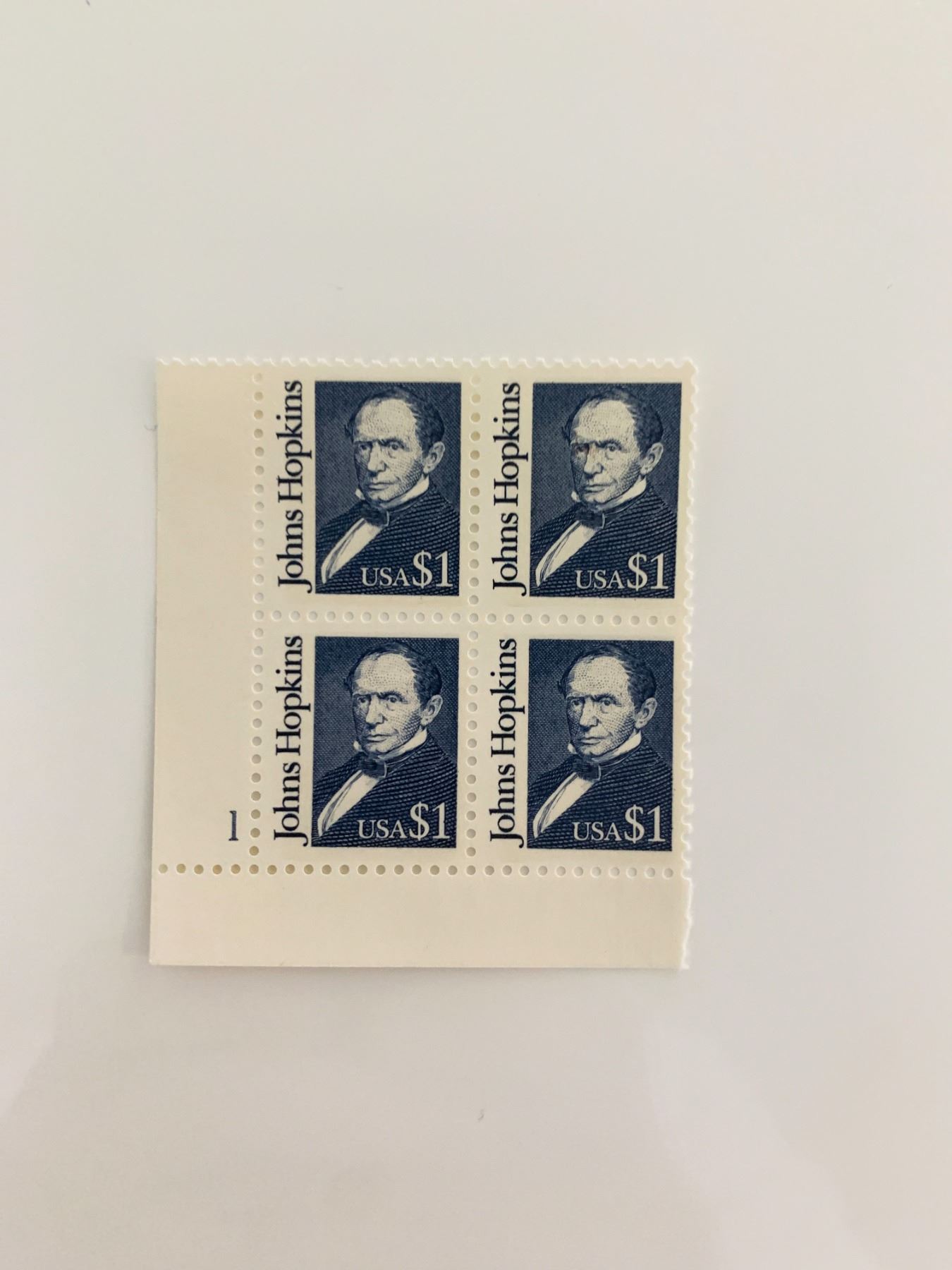 1989 $1 Great Americans: Johns Hopkins Stamp Plate Block