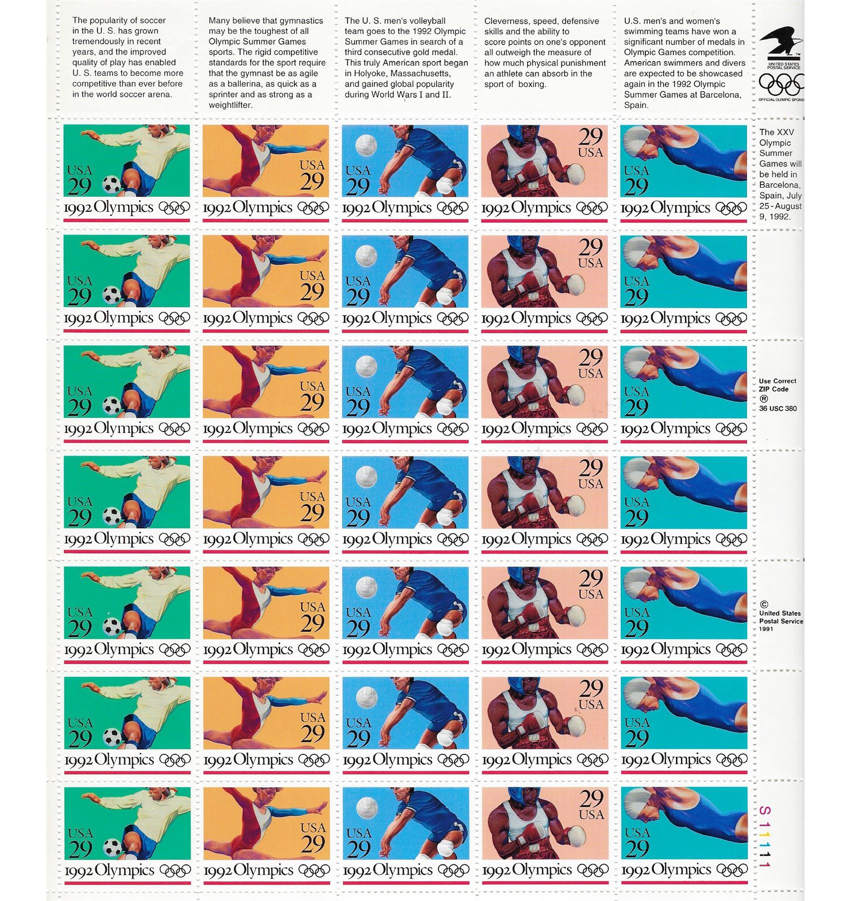 1992 Olympics Stamps, sheet of 35, 29c stamps, June 11, 1992