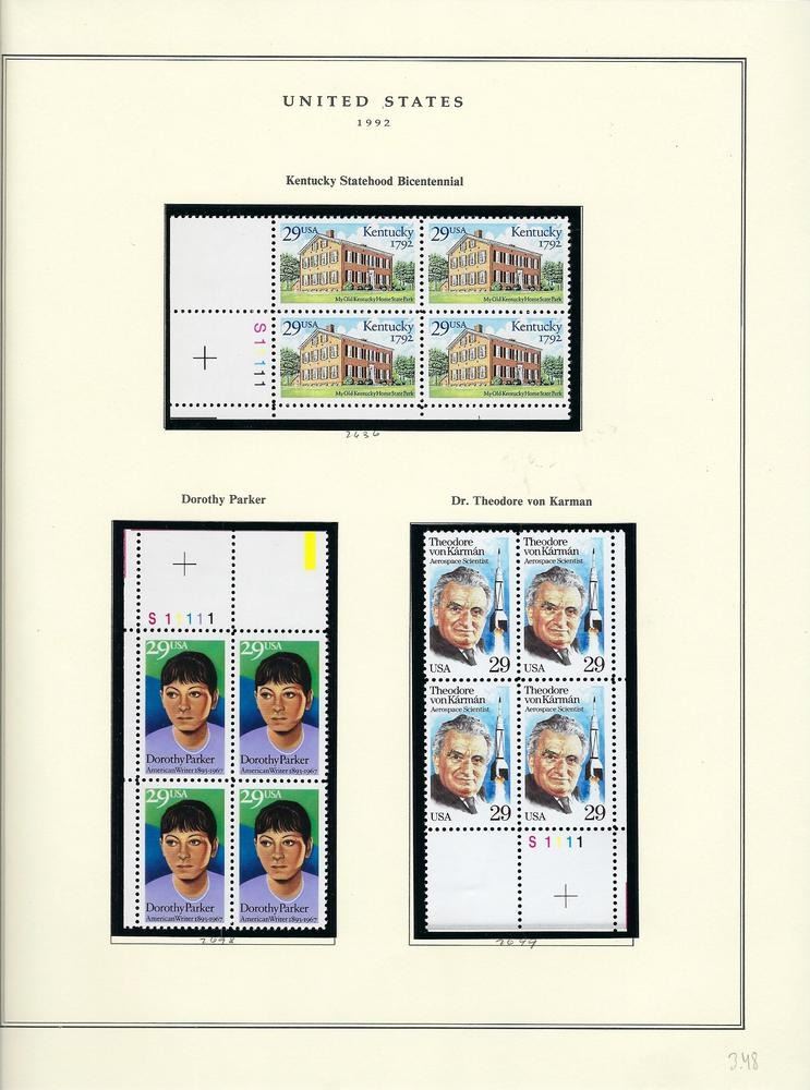 1992 US stamp collector sheet featuring Kentucky Statehood Bi-Centennial, Dorothy Parker and Theodore von Kármán stamps