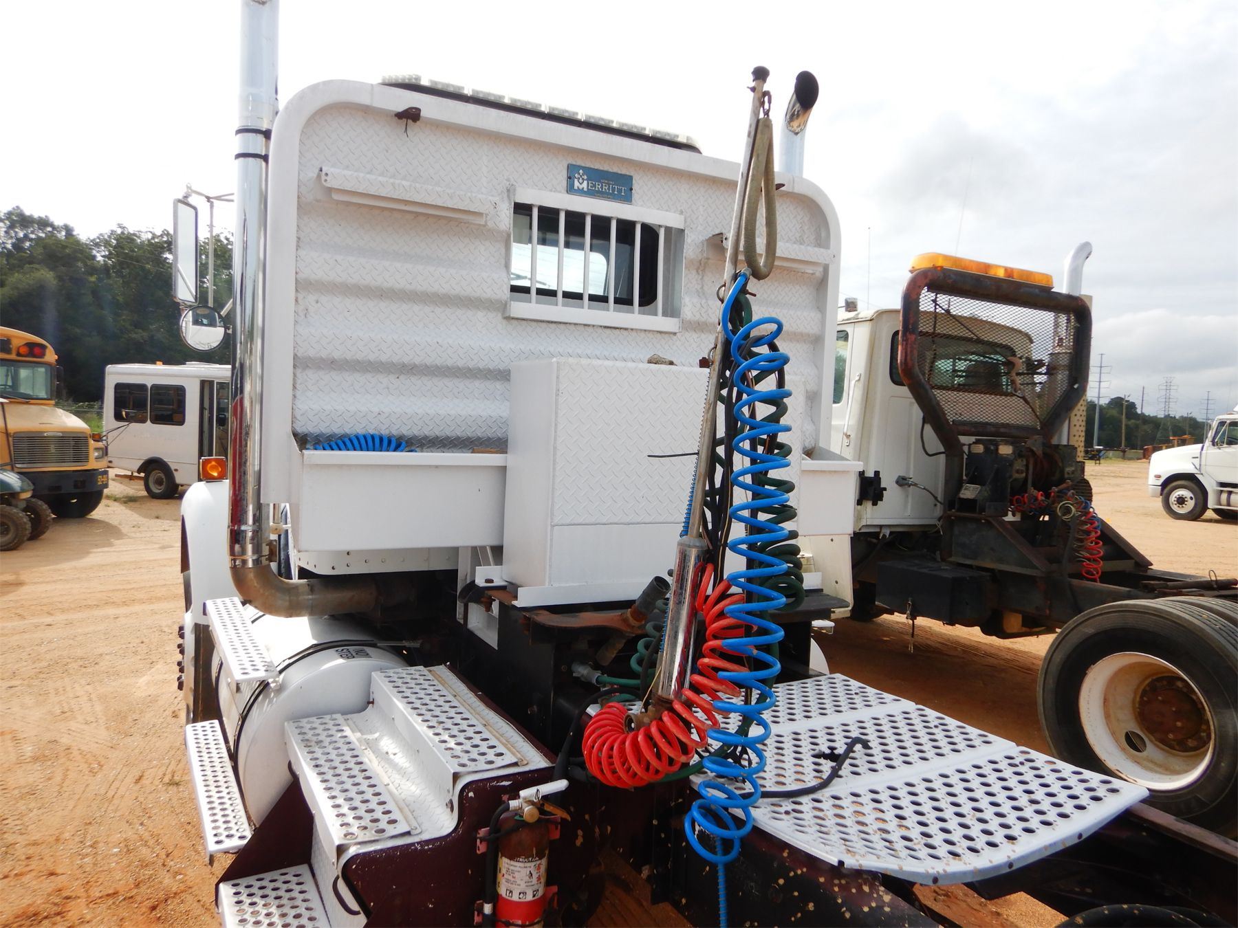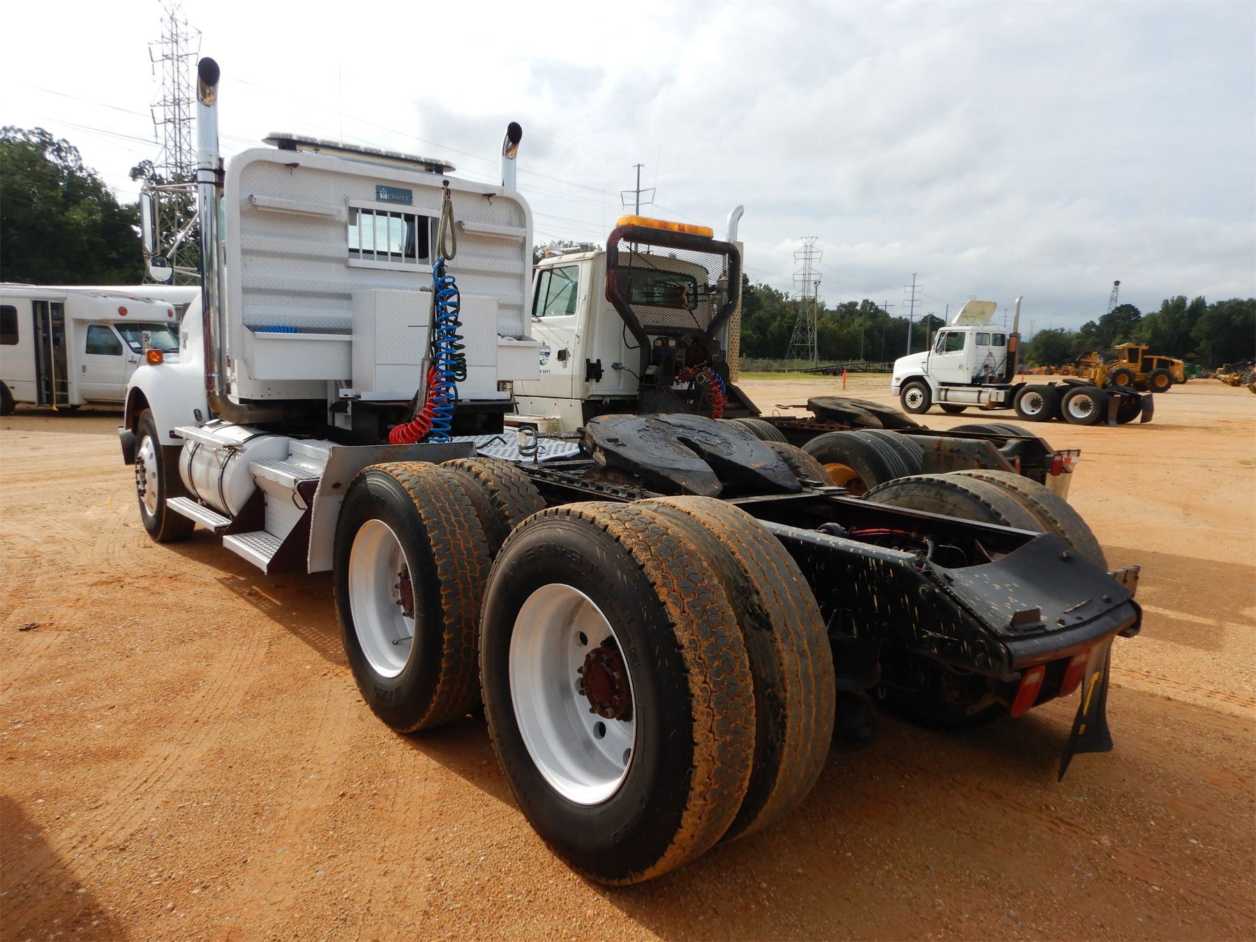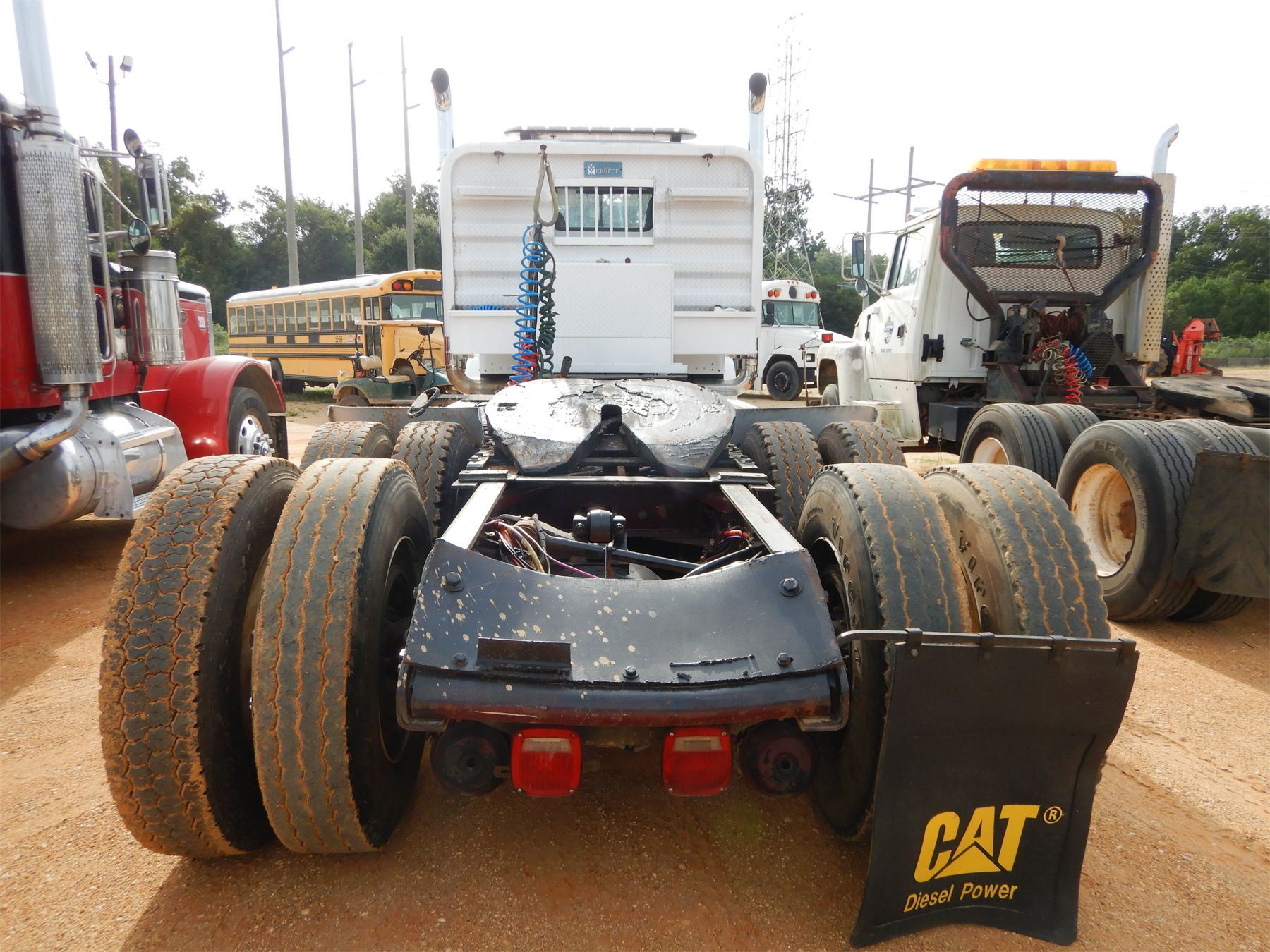 T/A, Cat 3406C engine, 8LL trans, 44K rears, air ride susp, 12K front, 207" W/B, alum headache rack, wet kit, 11R24.5 tires, alum front (title delay)