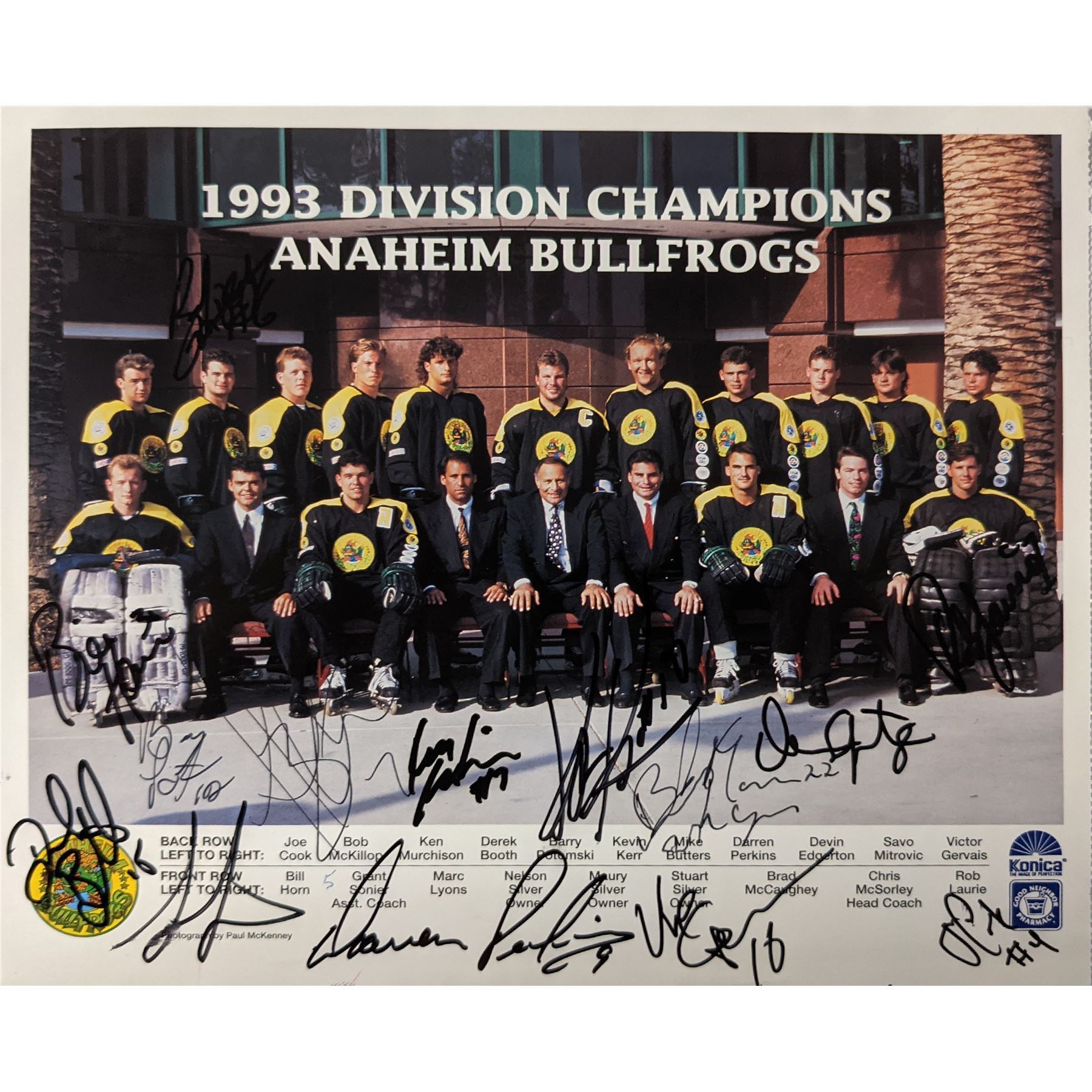 1993 Roller Hockey Divisional Champions Anaheim Bullfrogs Signed Photo. 10 Signatures. 8x10 inches