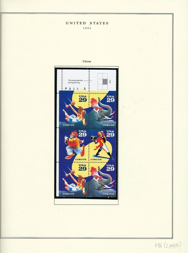 1993 US Circus stamp collector's sheet 6x29 cent stamps