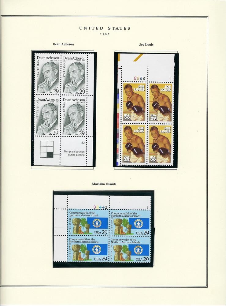1993 US stamp collector sheet featuring Dean Acheson and Joe Louis stamps