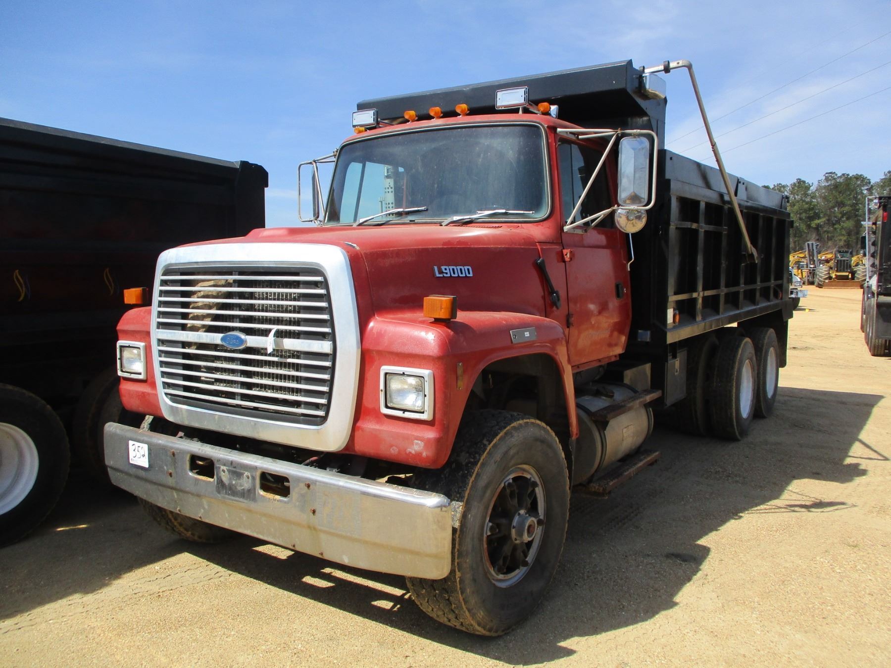 1994 FORD L9000 DUMP, VIN/SN:1FDYU90T9RVA33399 - T/A, CAT DIESEL ENGINE, 8LL TRANS, 38K REARS, 14,600# FRONT, 16' OX BODY, 11R22.5 REAR TIRES, 385/65R22.5 FRONT TIRES, ODOMETER READING 69,715 MILES