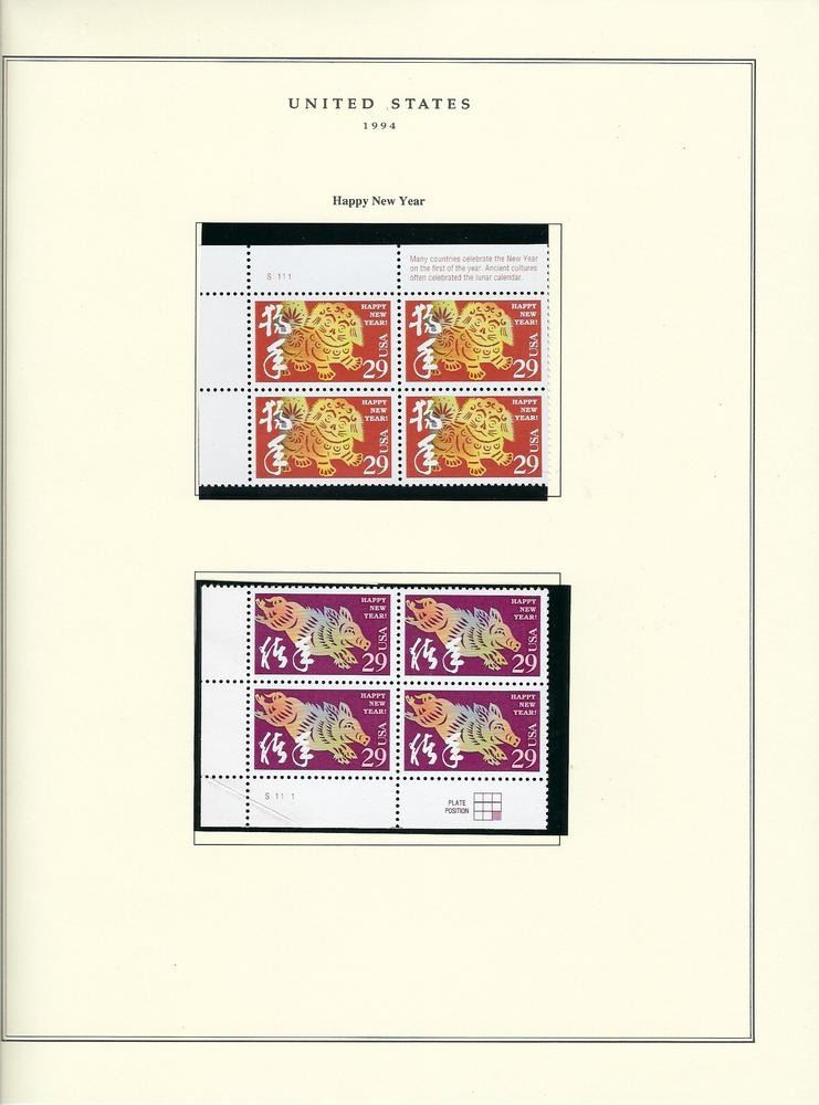 1994 US stamp collector sheet featuring Happy New Year stamps