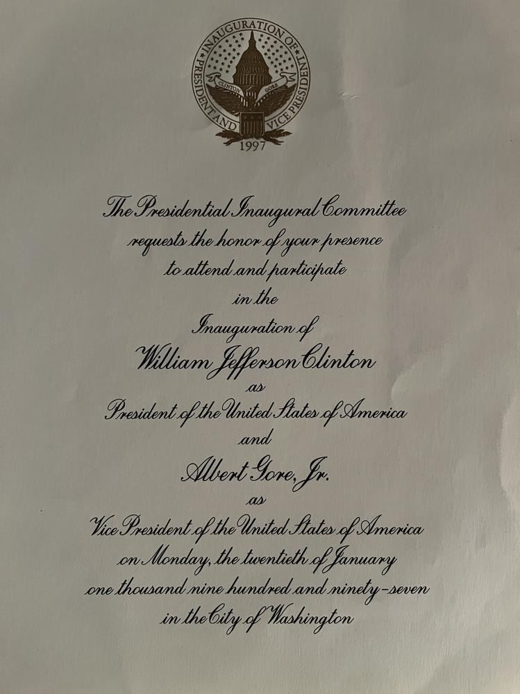 1997 Bill Clinton Inauguration invitation. 8x11 inches