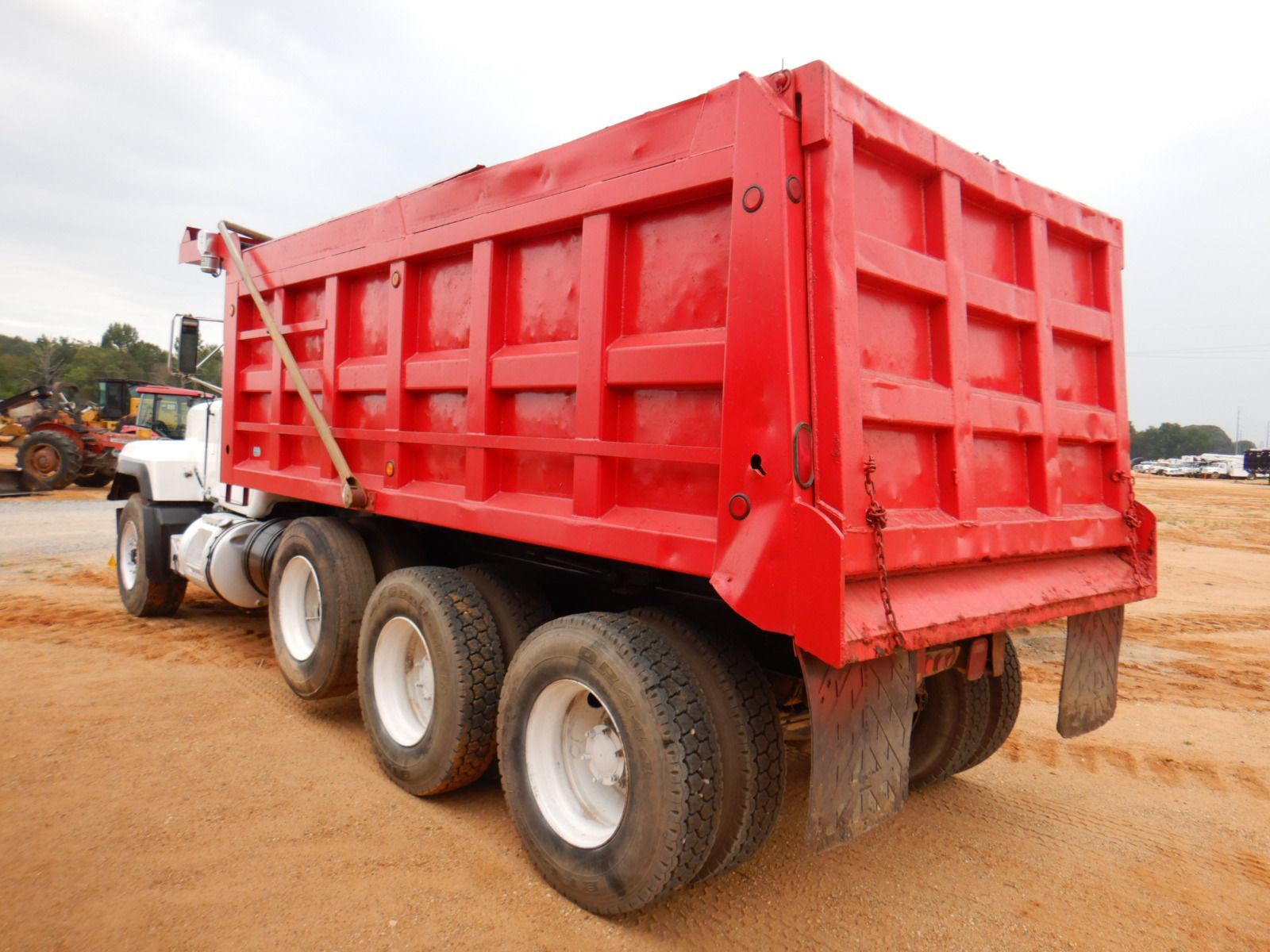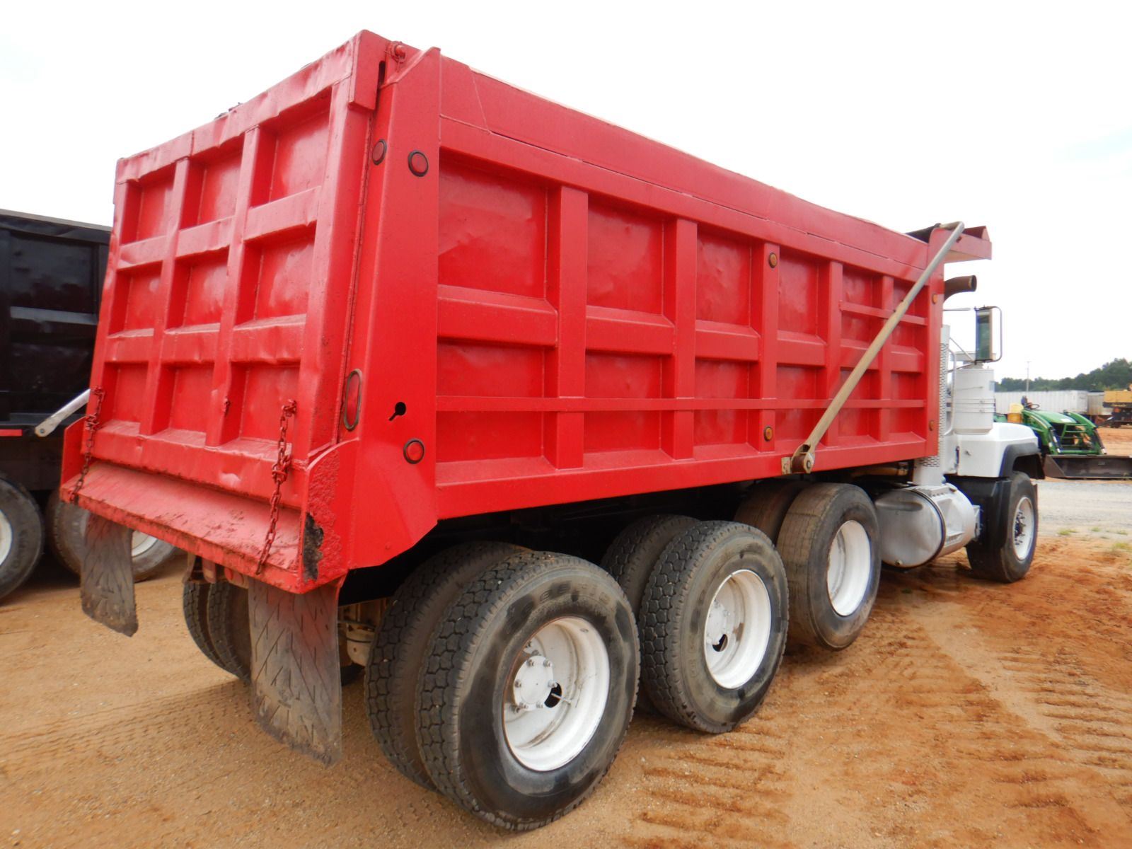 Tri Axle, Mack E7-350 engine, 8LL trans, 44K rears, 12,860 lb. front, 16' Warren body, 11R22.5 rear tires, 385/65R22.5 front tires
