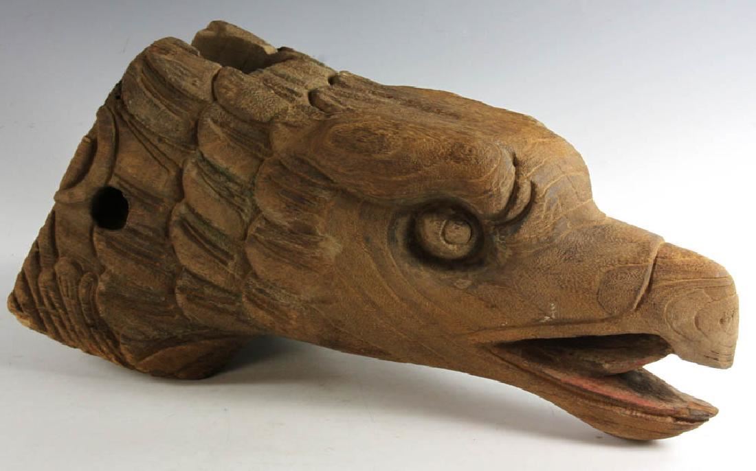 19th century carved eagle masthead, 11" H x 23 1/2" W x 10" D. Provenance: Wakefield, Massachusetts estate.