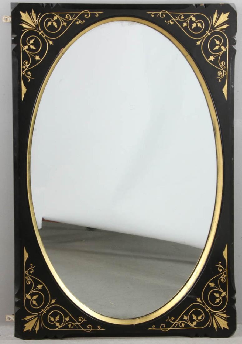 19thC Mirror Ebonized Wood with Gilt Inlay