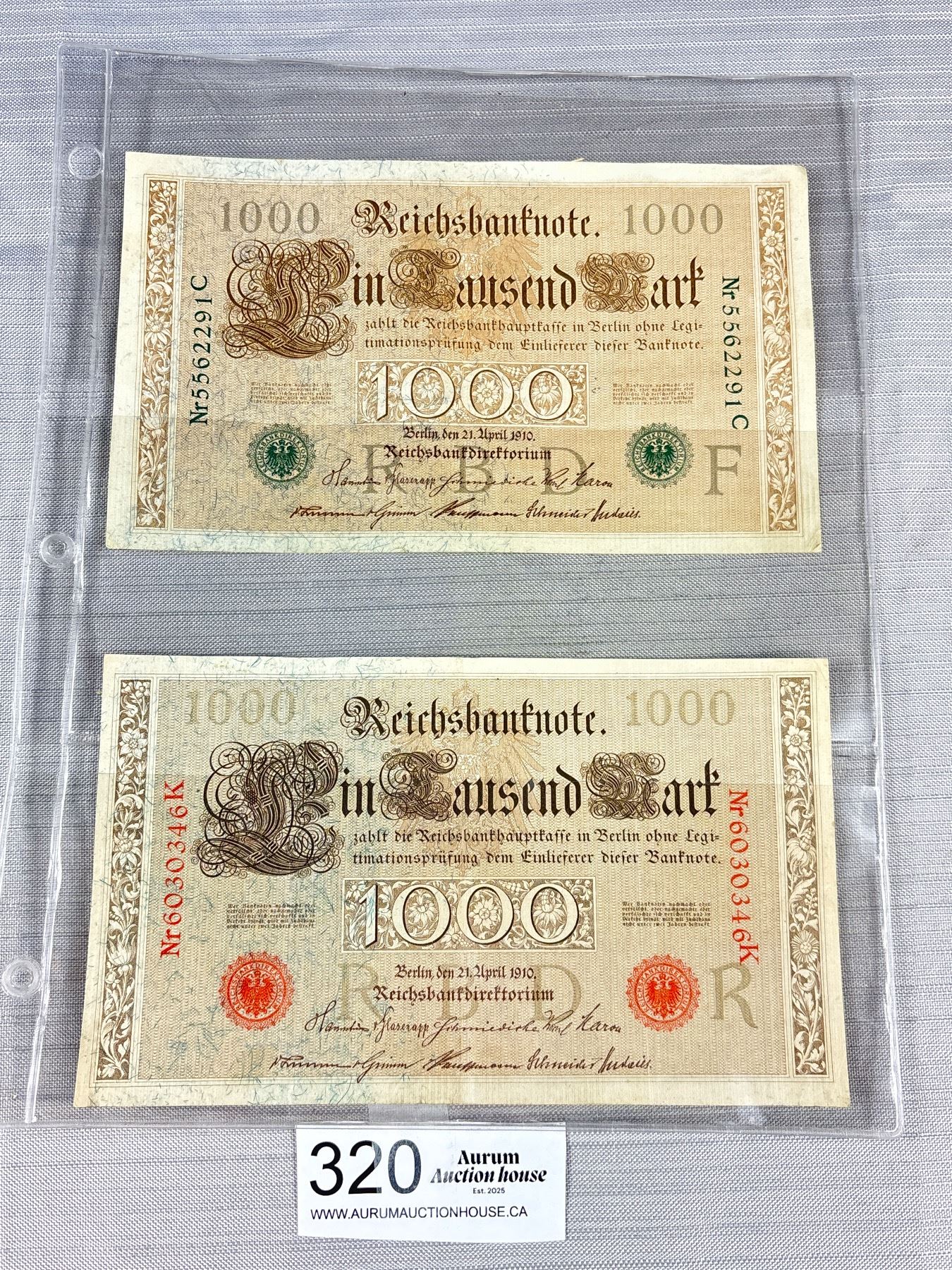 2 1910 German oversized notes