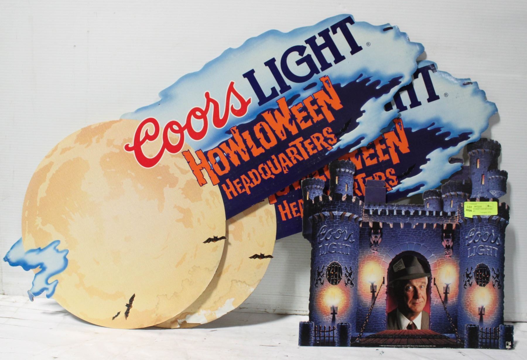 DAMAGE ON 1 SIDE OF DOUBLE SIDED - 3 PCS HALLOWEEN THEMED W/ LESLIE NIELSEN STANDEE 36" X 16"