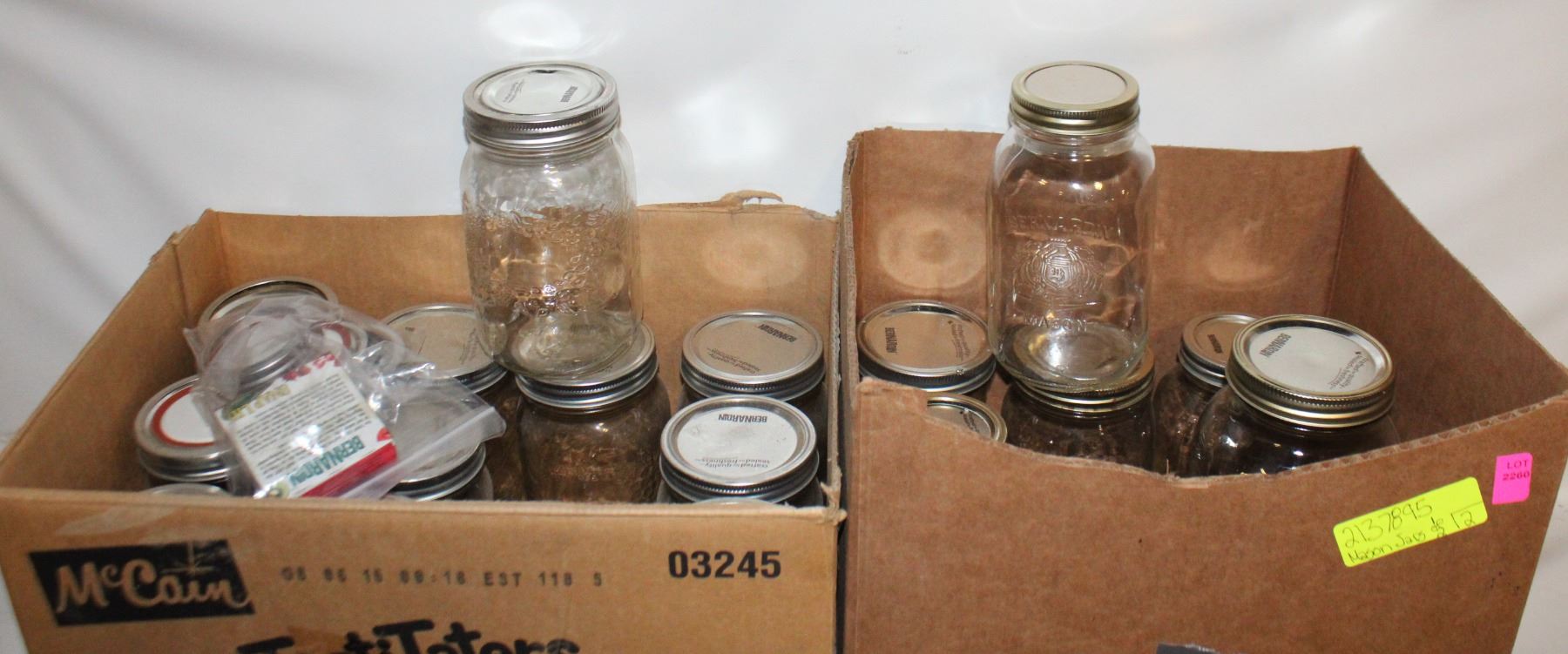 2 BOXES OF ASSORTED MASON JARS/CANNING LIDS ETC