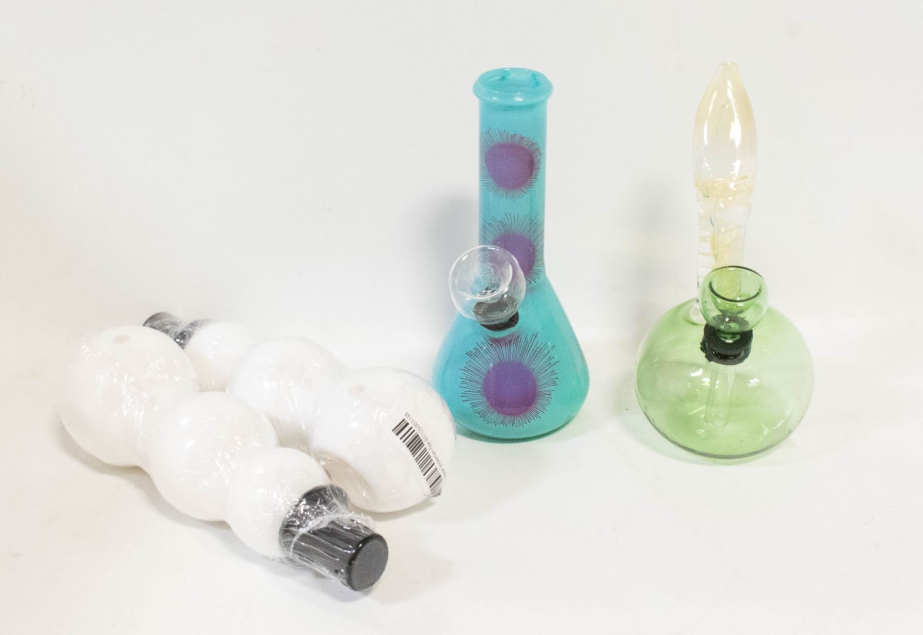 2 GLASS BONGS PLUS 2 SILICONE SNOWMAN PIPES