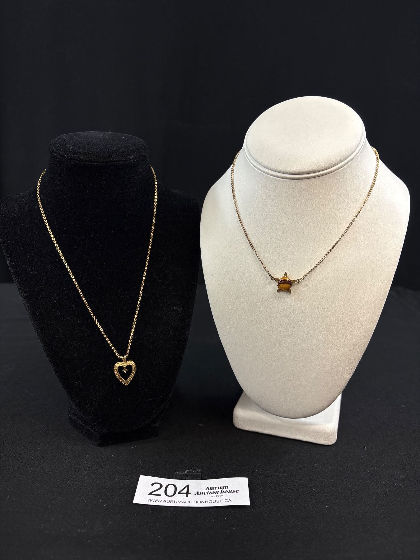 2 Gold Tone Necklaces ( 1 Star + 1 Heart)