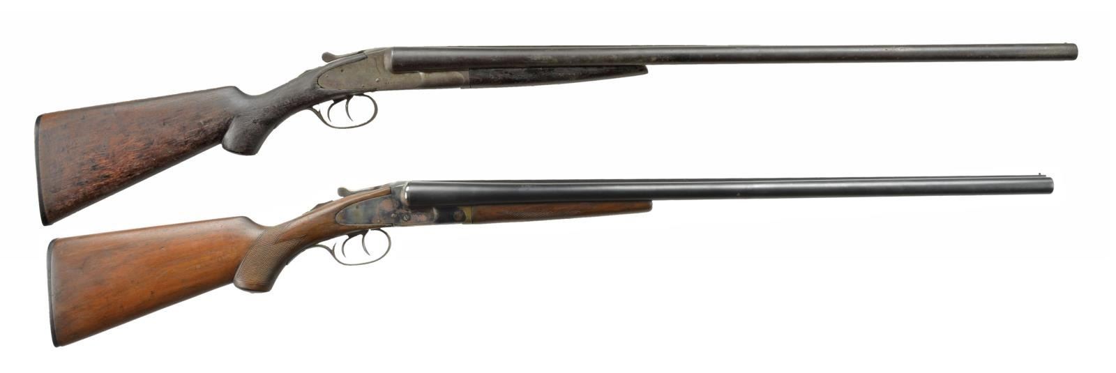 2) Cal. 12 Ga. S# FWS32605 (1948). Bbls. 28" w/ matted rib & front bead . Full chokes. CONDITION: Good reblued bbl. w/ dents. Fair re case colored action w/ oxidation. Sanded & refinished wood has worn checkering w/ handling marks. Left bore good, right bore w/ pitting throughout. PROVENANCE: Estate Collection of Jack Verret Sr. (22-831/MD). ALL CURIO. $300-500.