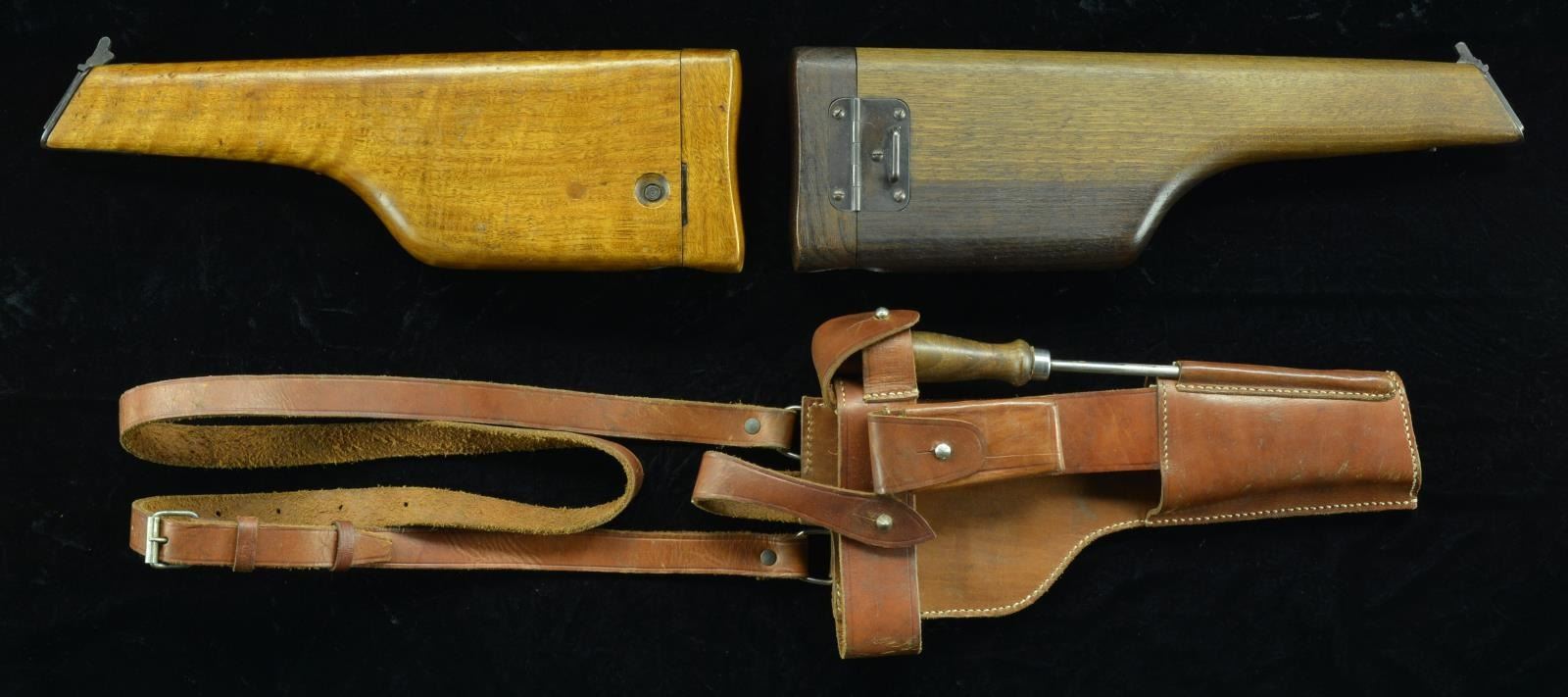 2) SHANGHAI CHINESE STOCK FOR C96 COPY. Overall length: 14" w/ Shangai Arsenal mark on side. CONDITION: good wood finsih w/ fair appearing metal parts.
