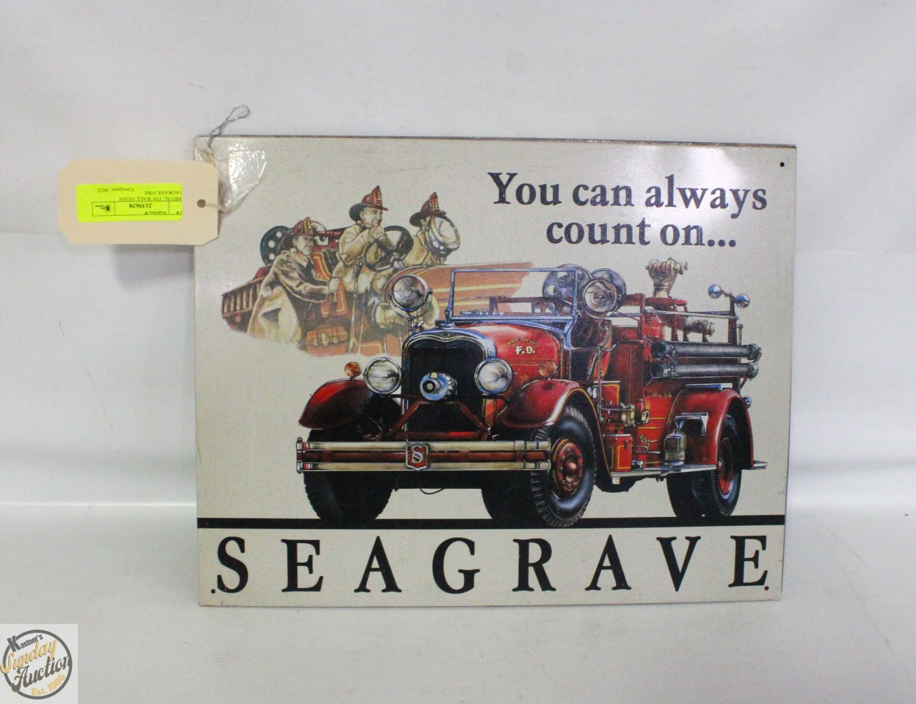 2 METAL TIN WALL SIGNS SEAGRAVE FIRE