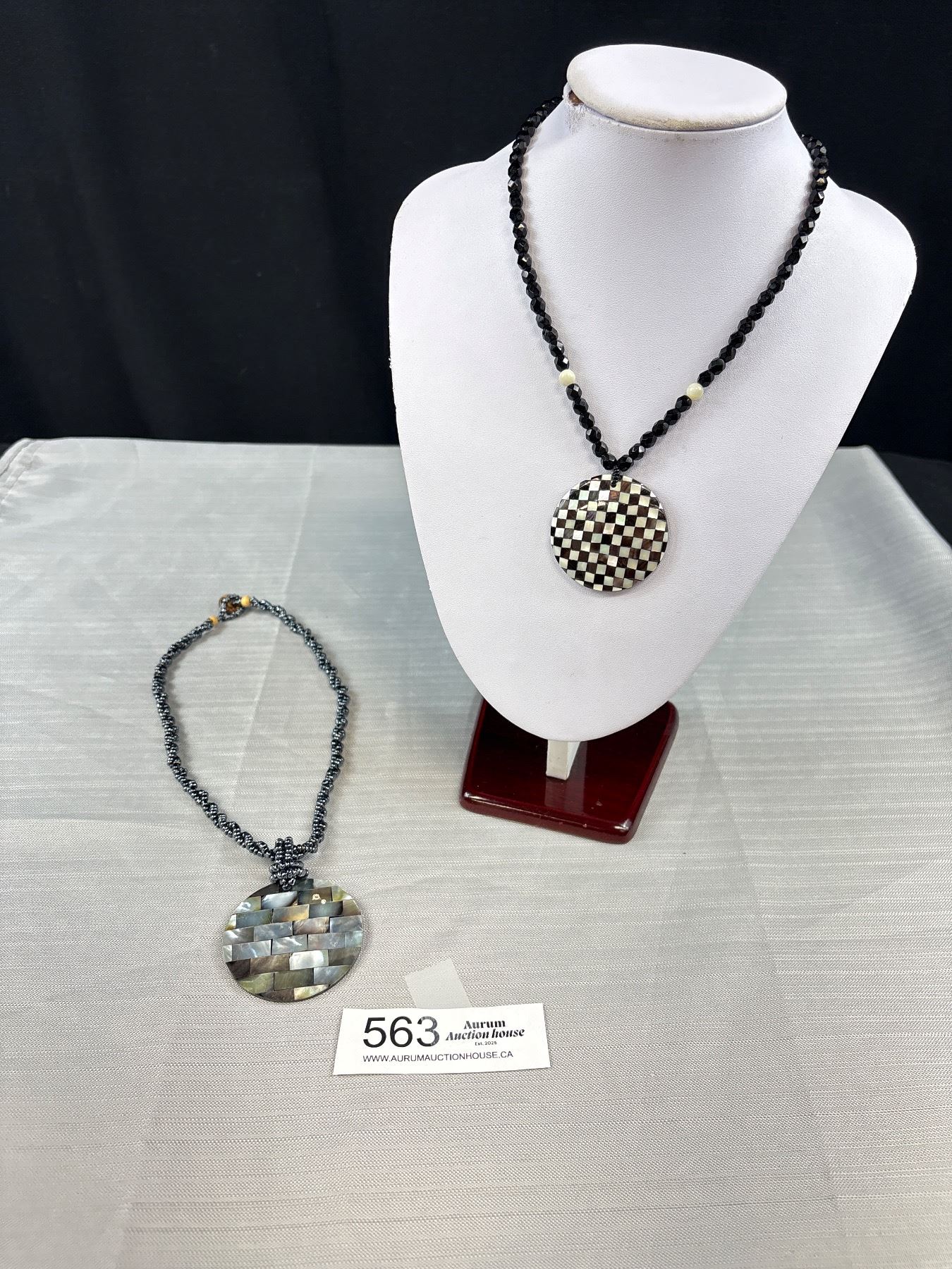2 Mother of Pearl Inlaid Pendants w/ Beads Necklace