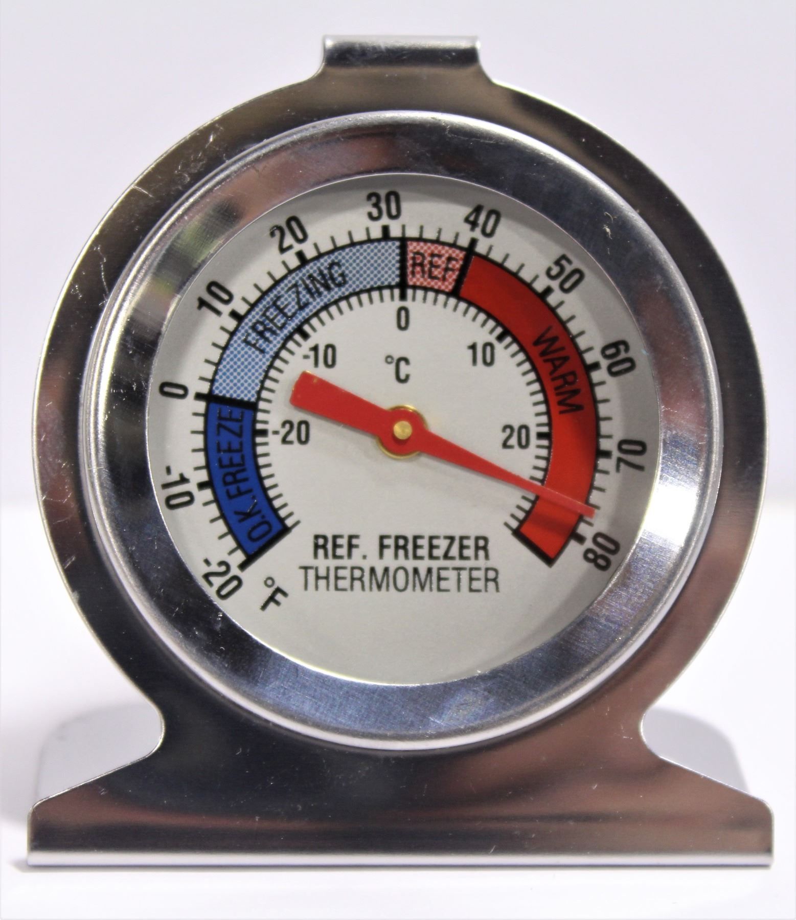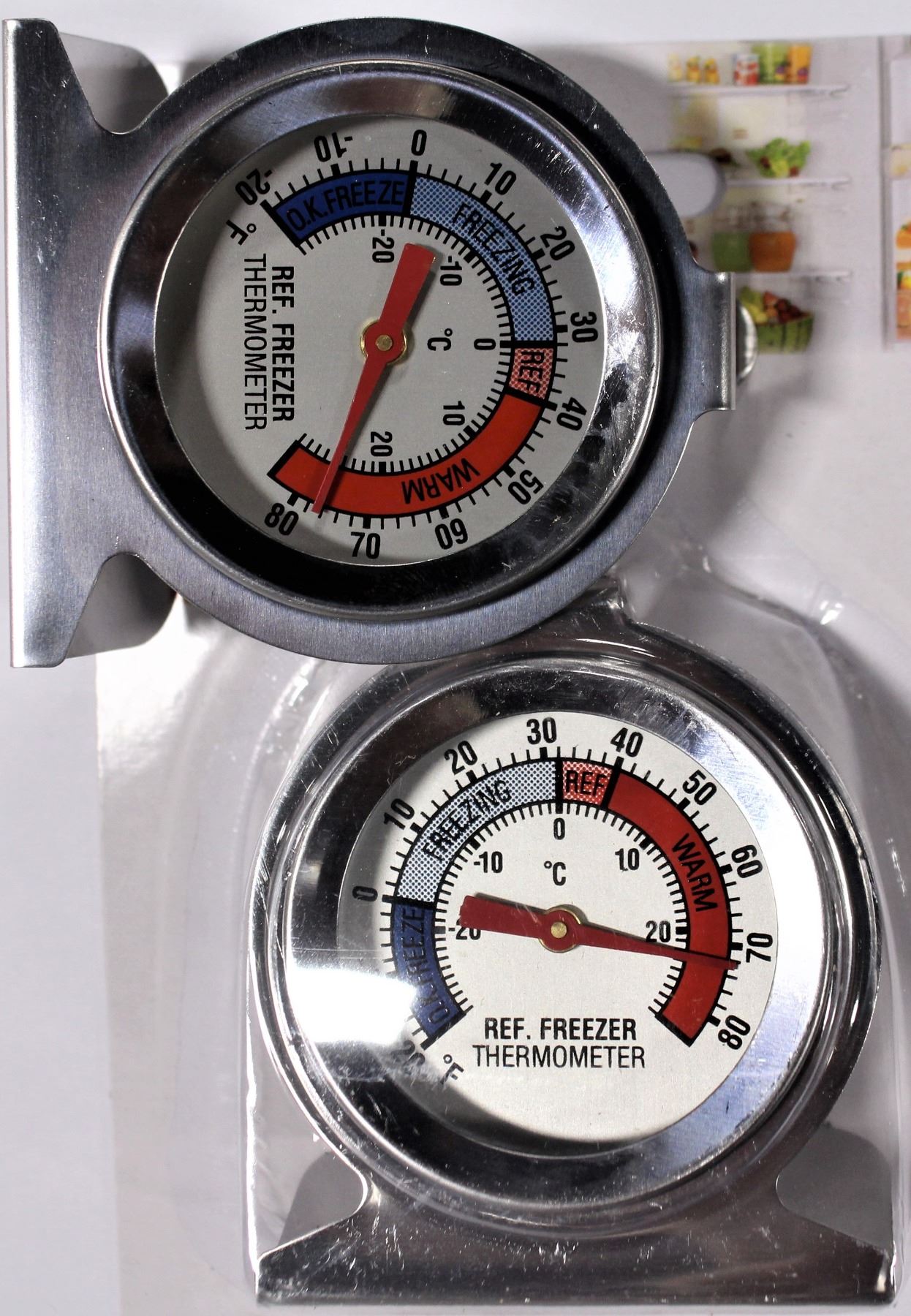 NEW IN PACKAGING STAINLESS STEEL DIAL THERMOMETERS. STANDING OR HANGING. DEGREES CELSIUS & FAHRENHEIT.