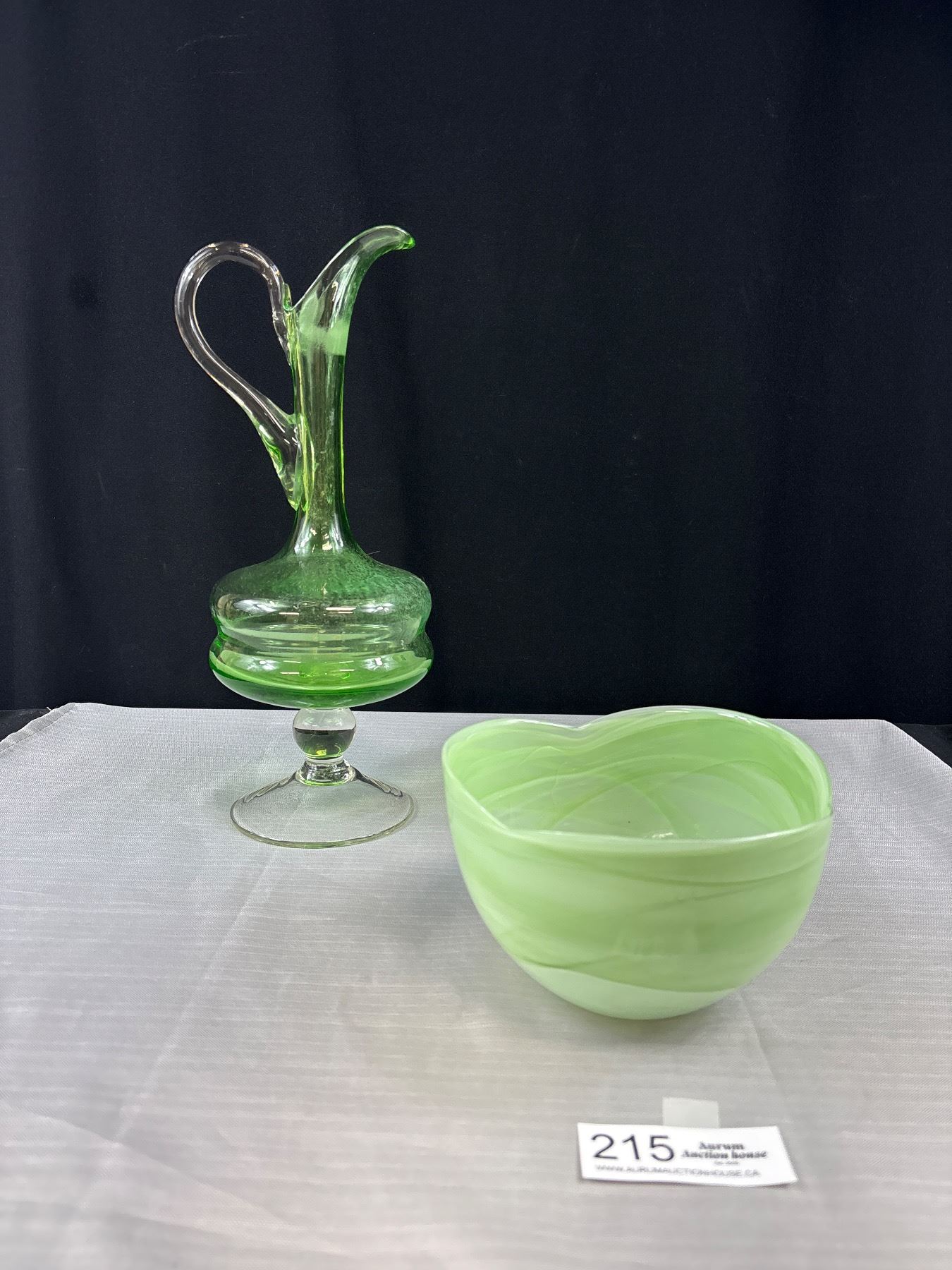 2 Nice Mid Century Glass Pieces, Waterjug and Bowl 13" Tall