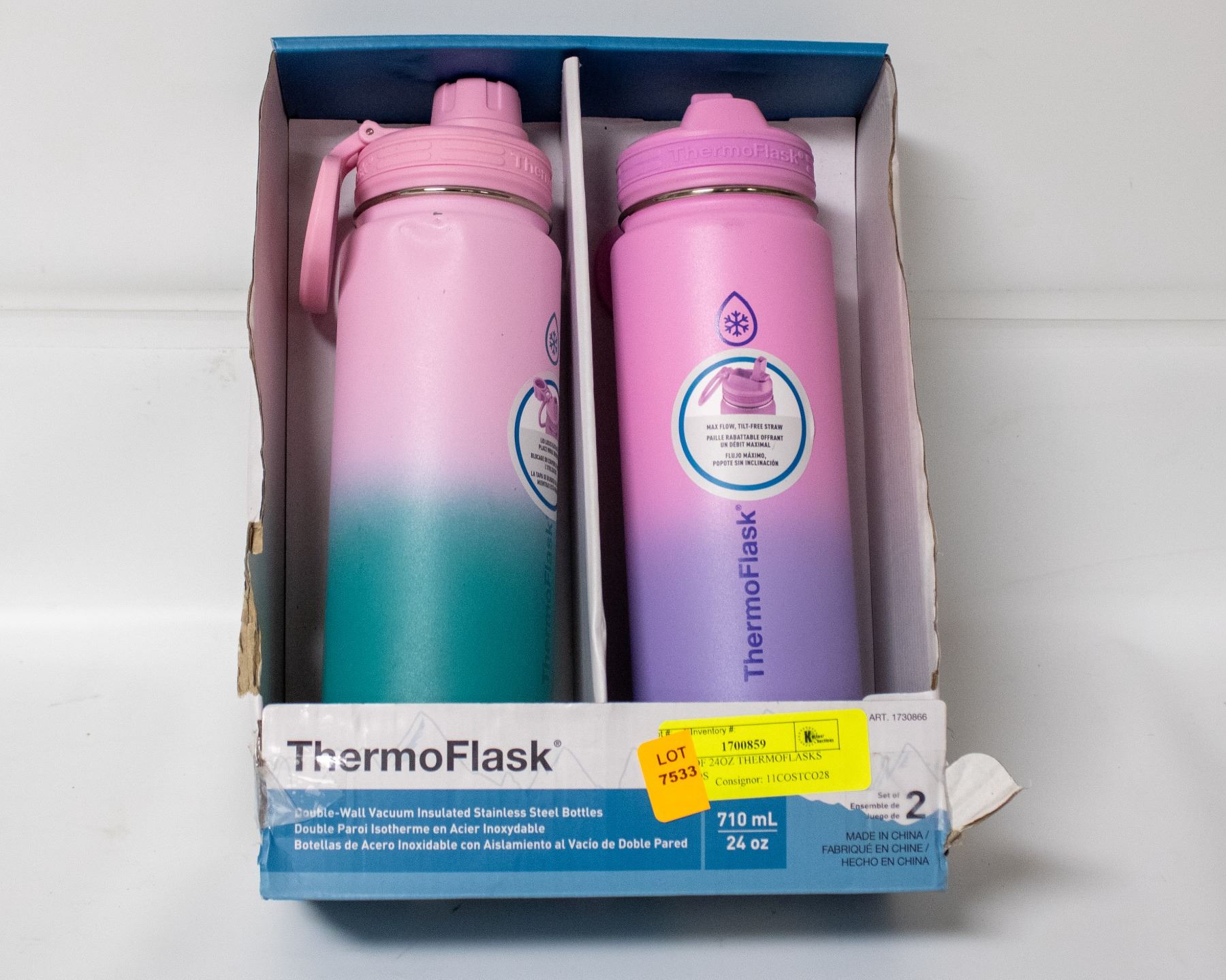 STAINLESS STEEL, CTC SES **ONE FLASK IS BRAND NEW AND THE OTHER HAS A DENT BUT IS FULLY FUNCTIONAL**