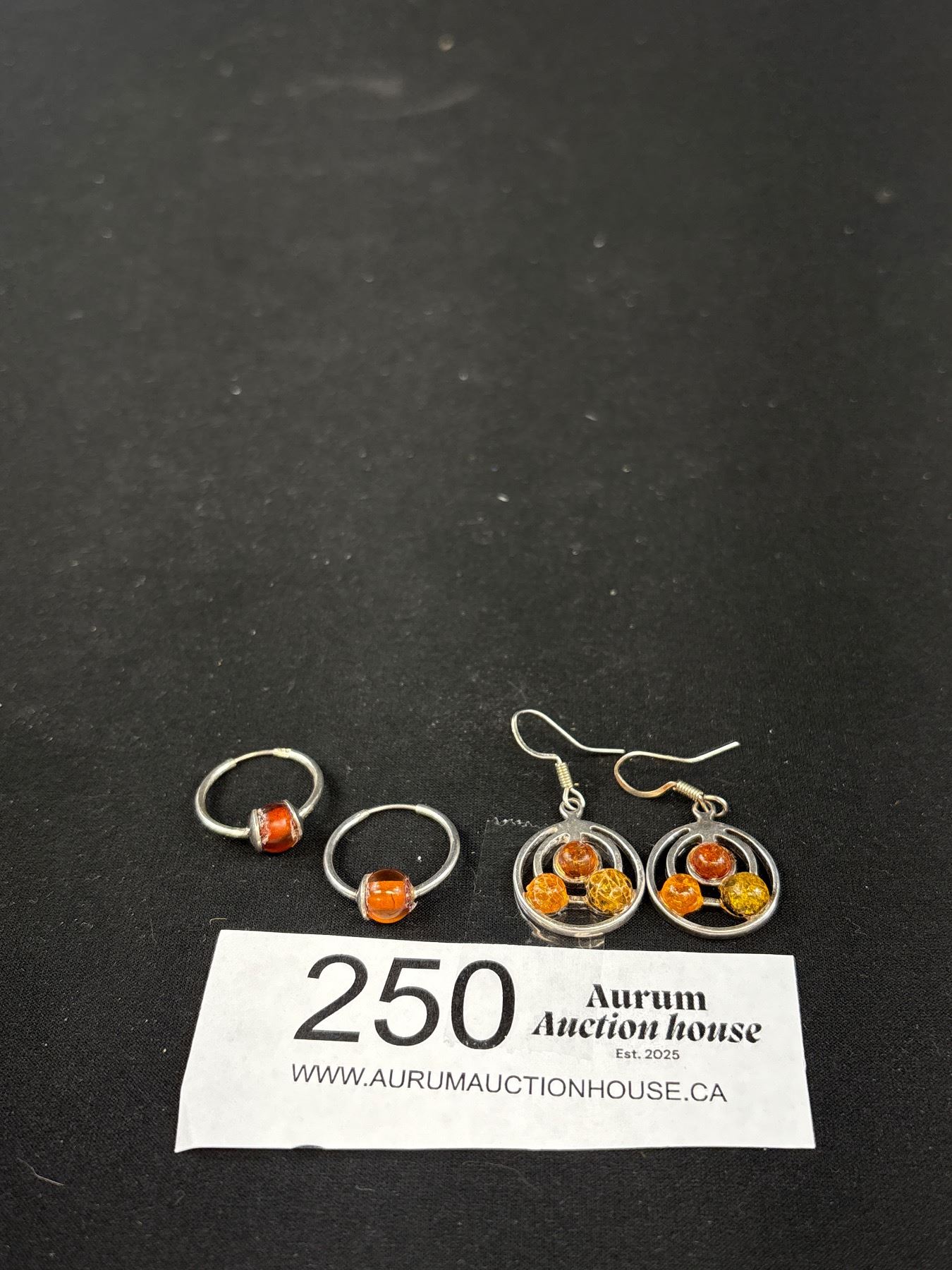 2 Pairs Vintage 925 Sterling Silver Amber Earrings - 7.7 Grams - Marked & Tested