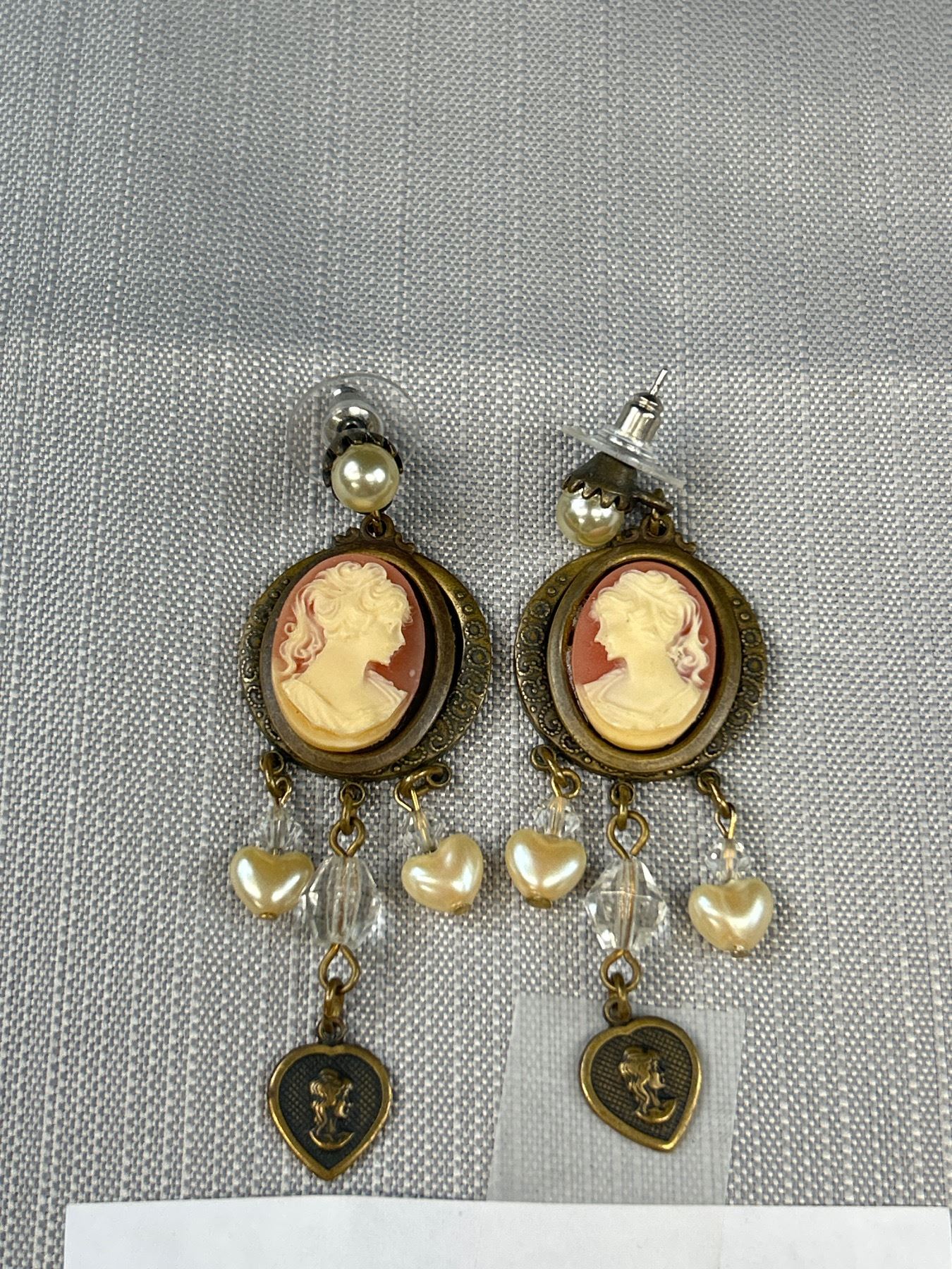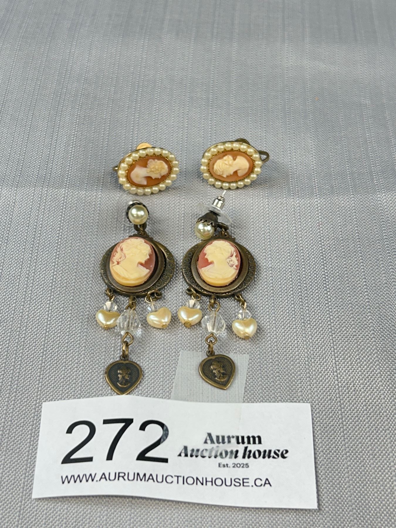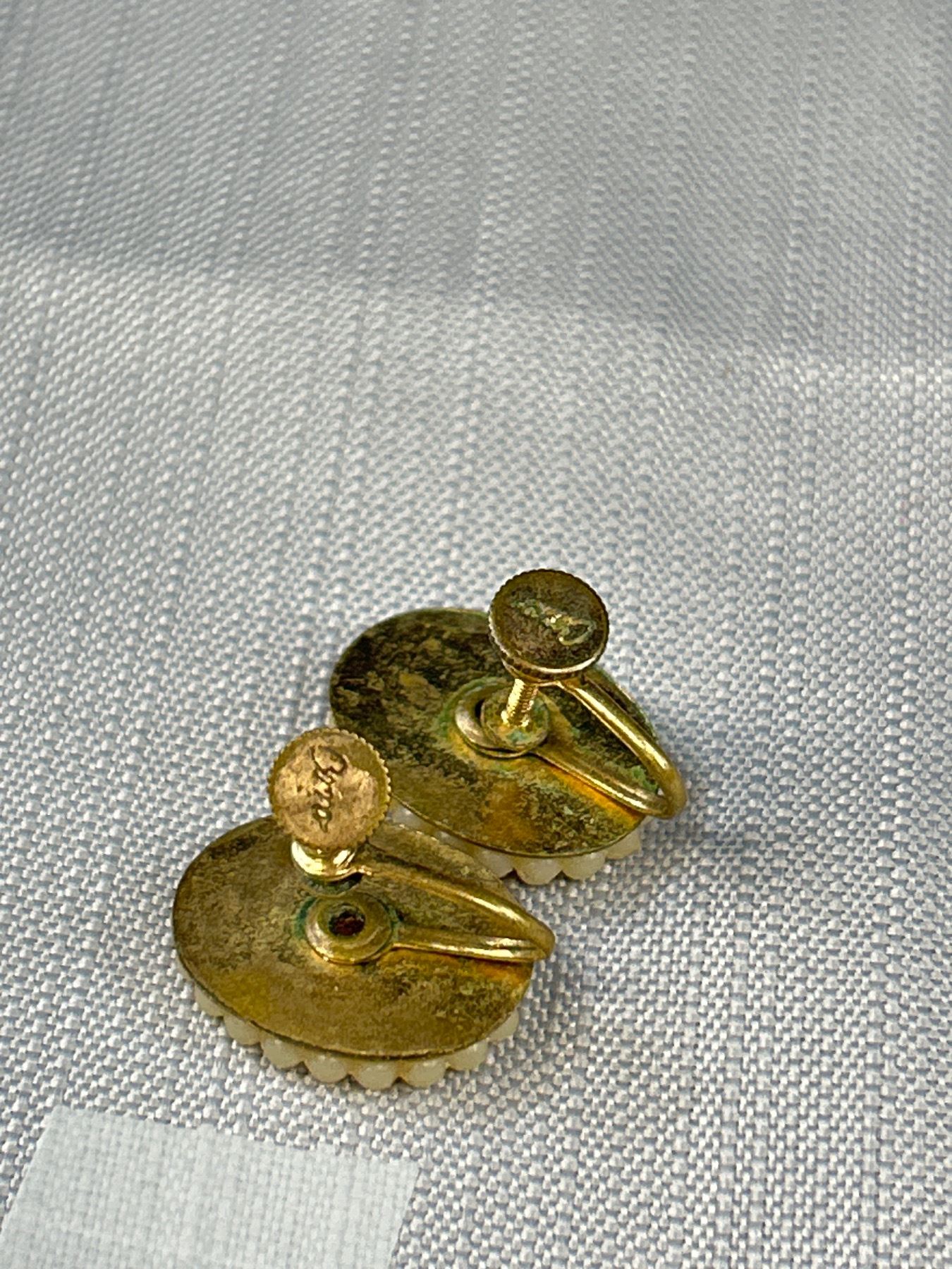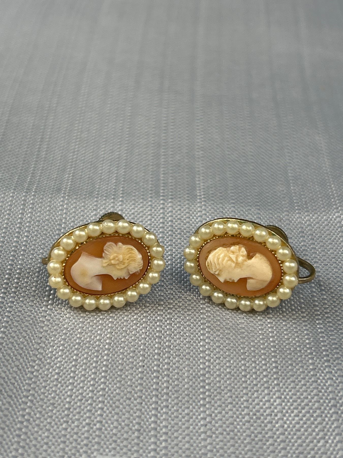 2 Pairs of Vintaeg Screw On Earrings Cameo + Pearls