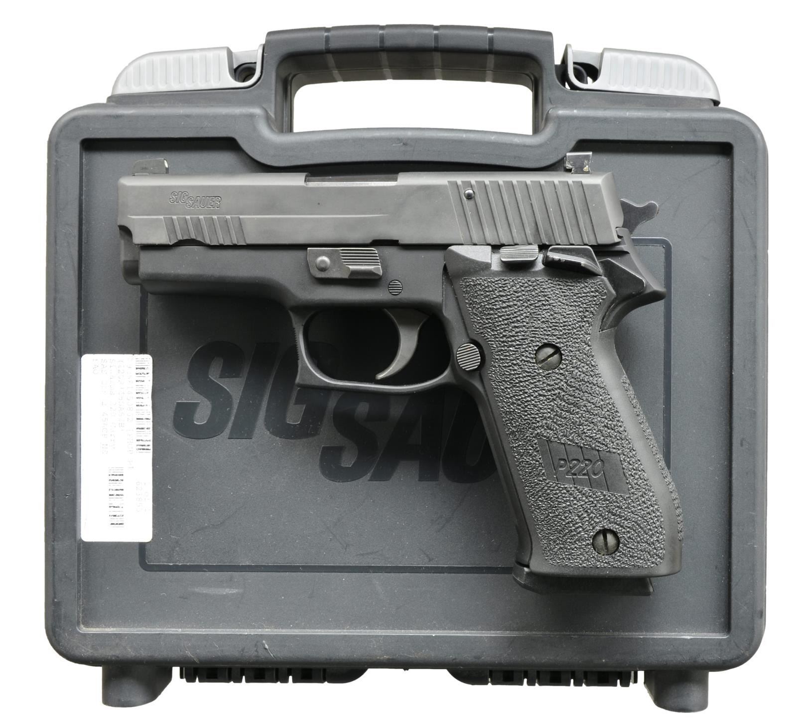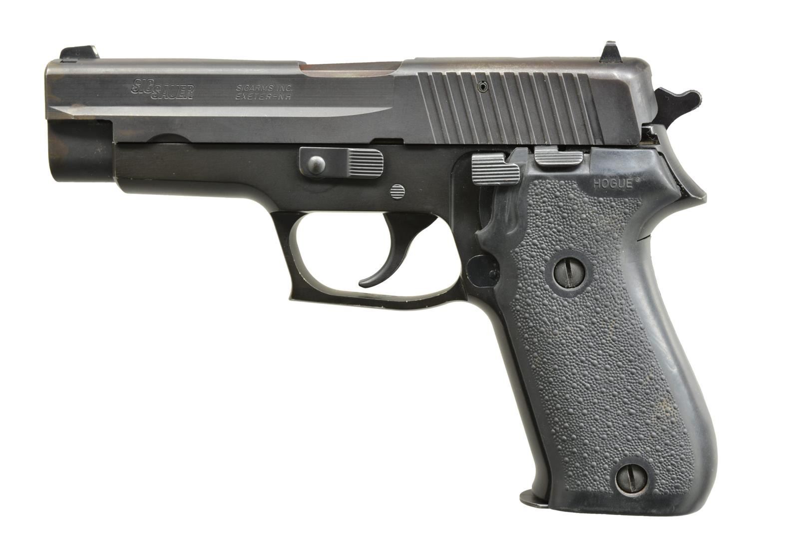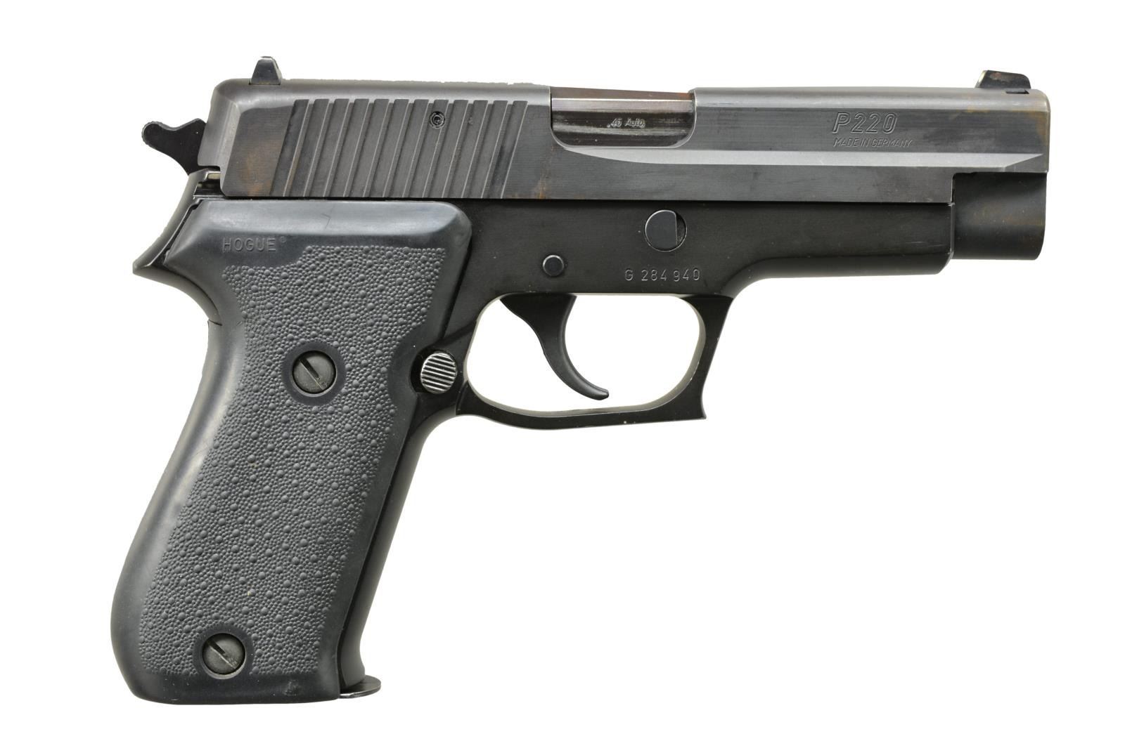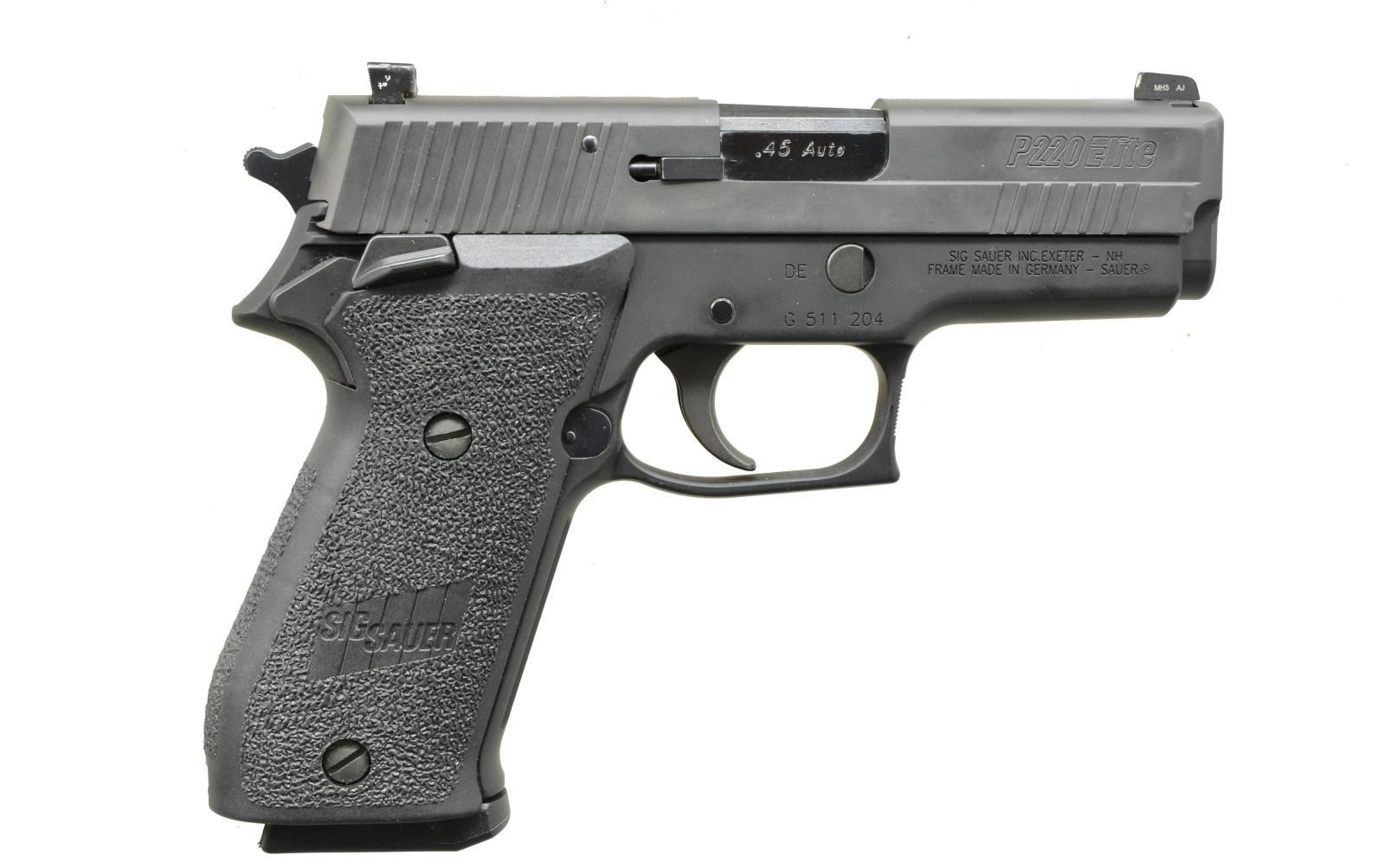 1) Cal. 45 ACP. S# G284940. Bbl. 4 1/4”. Blued finish. Fixed sights. Decocking lever. Stippled 2 piece Hogue hard rubber grips. Left handed mag. release. MAGS: 1 - 8 rd. single stack. CONDITION: slide shows thinning finish at muzzle & on high edges from holster wear w/ a brown patina on exposed areas. Frame has scattered handling marks & high edge wear. Bright shiny bore w/ good rifling. (20-3915/ZAL). 2) ELITE. Cal. 45 ACP. S# G511204. Bbl. 3 3/4”. SA only. Blued finish. 3 Dot night sights. Ambidextrous safety. Stippled 2 piece black plastic grips. MAGS: 3 - 8 rd. UNATTACHED ACCESSORIES: original box. CONDITION: overall near excellent w/ a few scattered light handling marks. Near excellent bore. (20-3916/ZAL). BOTH MODERN. $700-1,100.