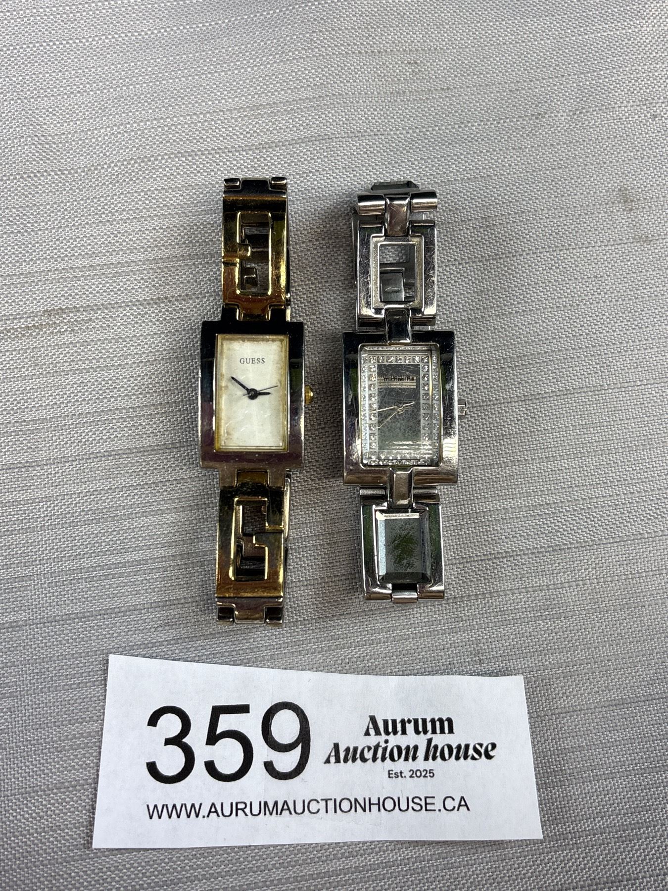 2 Stainless Steel Ladies Quartz Watches, Marked Michael Hill + Guess Batteries Required