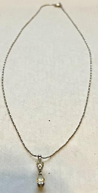 2 Stone Genuine Diamond 21" 14K White Gold Necklace, Pear Shape & Marquis Diamonds, .70 Ct ea