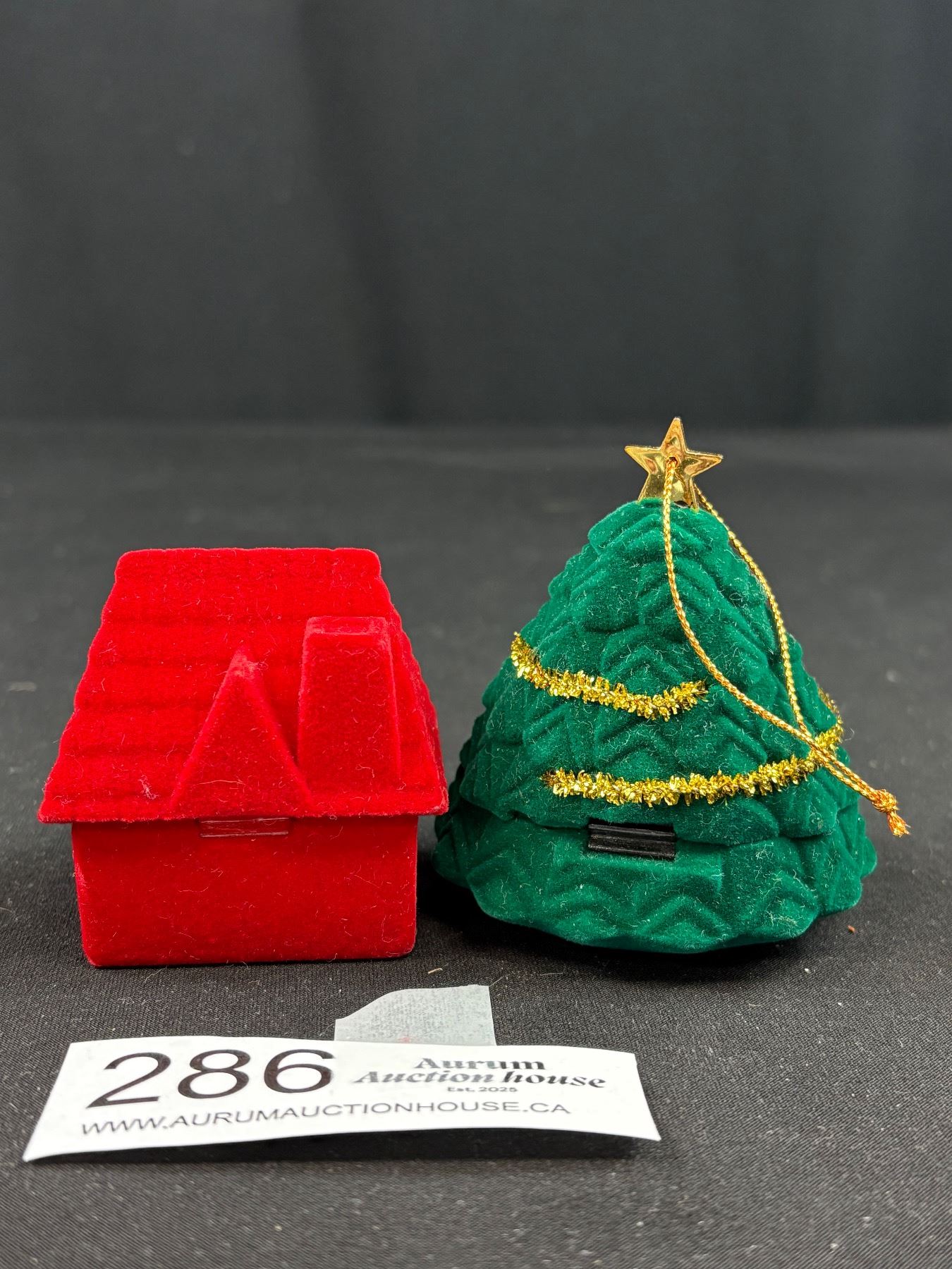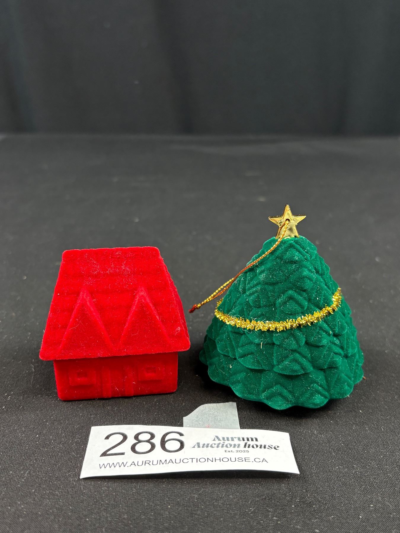 2 Unusual (Jewelry) Ring Boxes Xmas Tree + House