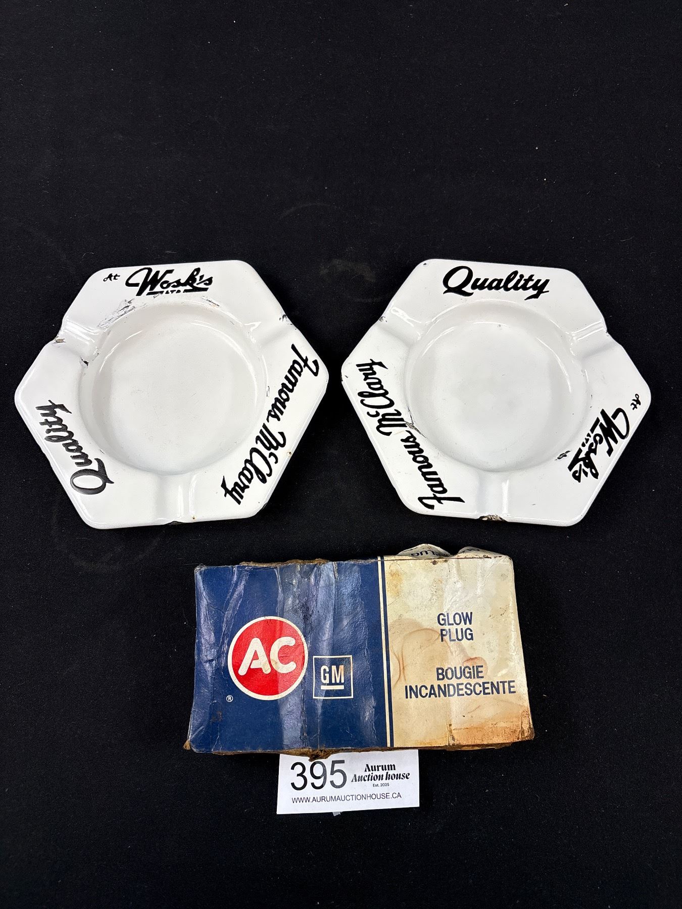 2 Vintage Porcelain Wosks Ash Trays and ACGM Spark Plugs