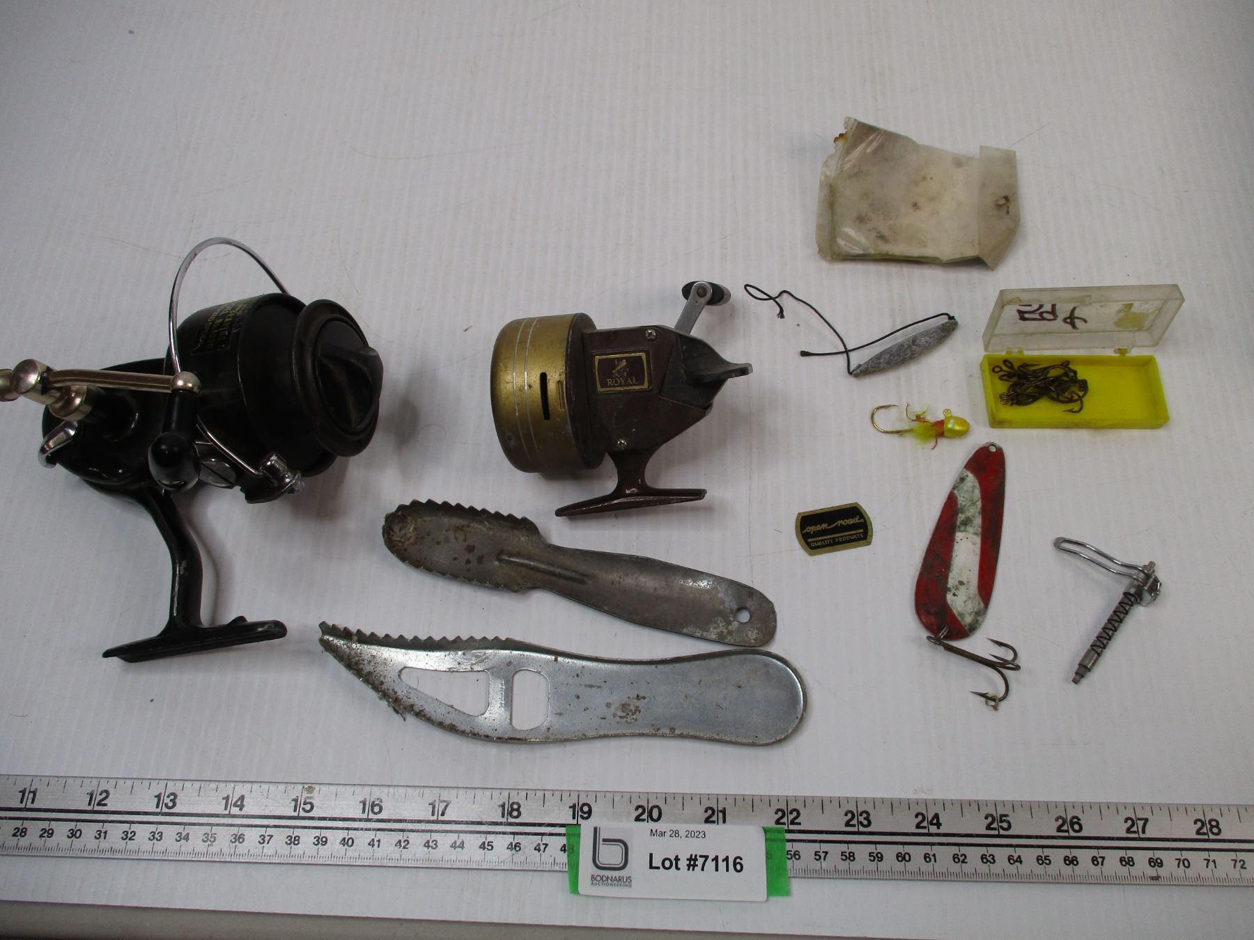 (2) Vintage Reels + Misc. Hooks and Scrapers