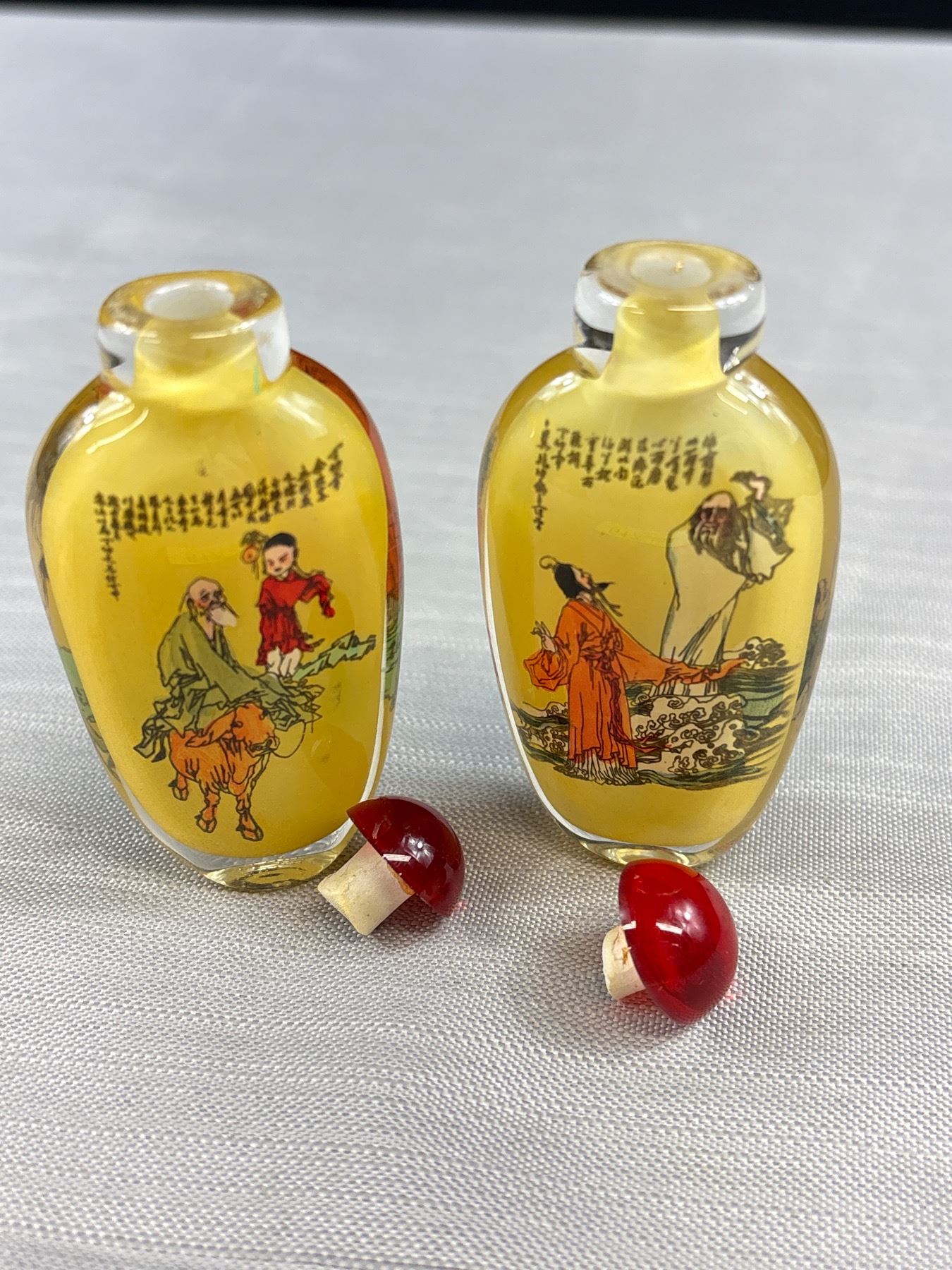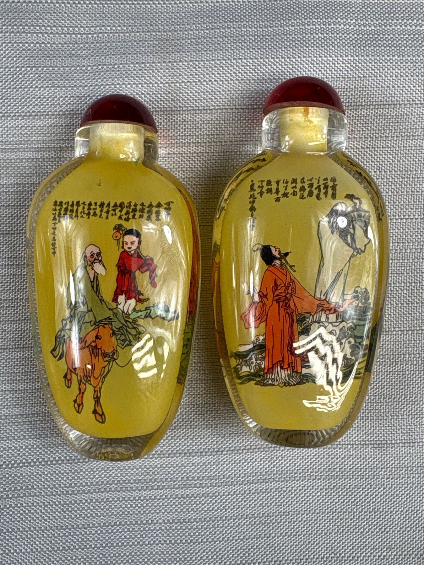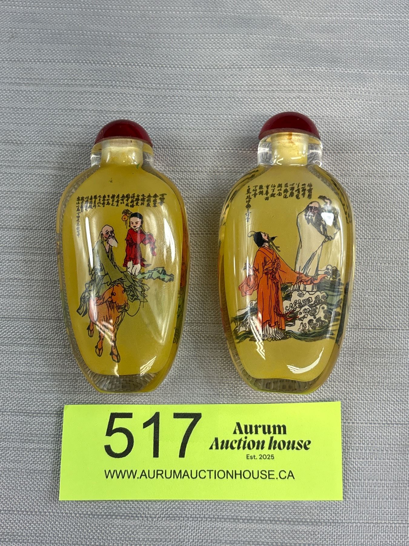 2 Vintage Reverse Painted on Glass Chinese Snuff Bottles