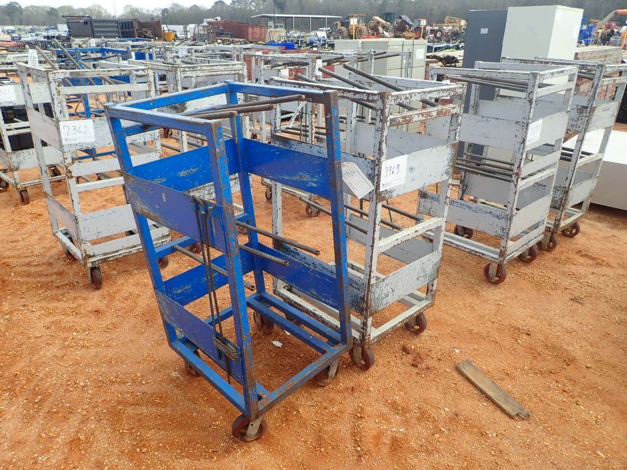 (2) metal roll around parts cart