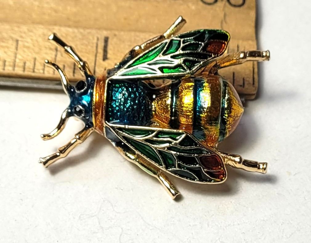 & BLUE ENAMEL BUMBLE BEE BROOCH. JEWELERY