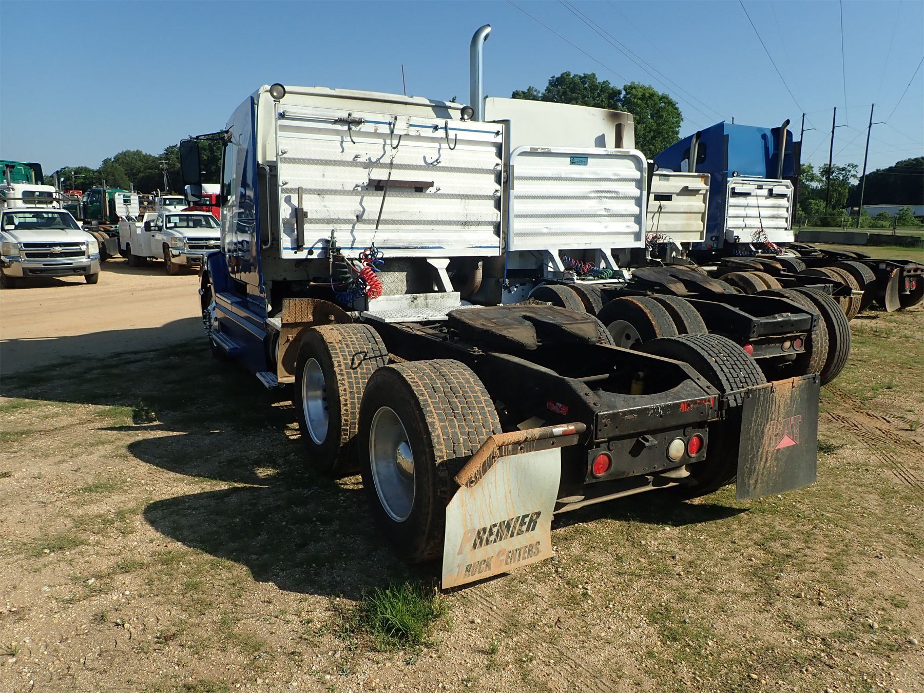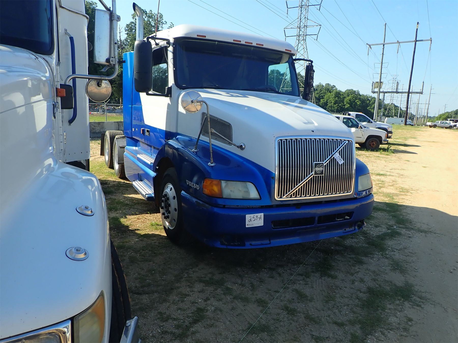 t/a, volvo diesel engine, 10 speed trans, 38K rears, air ride susp, 12,350 front, 193" w/b, sleeper cab, alum headache rack, 445/50R22.5 rear tires, 275/80R22.5 front tires, all alum