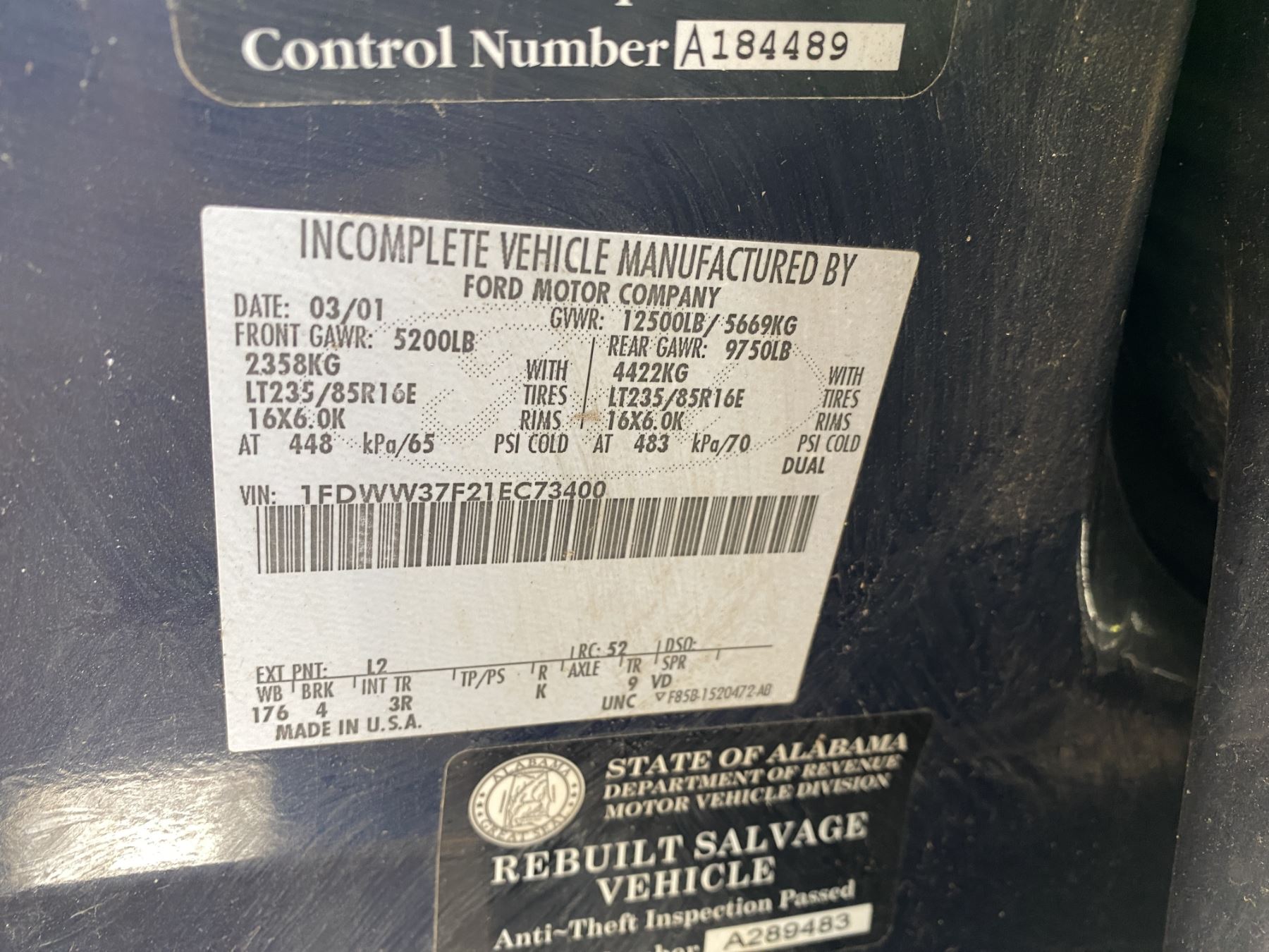 Vehicle ID Number: 1FDWW37F21EC73400