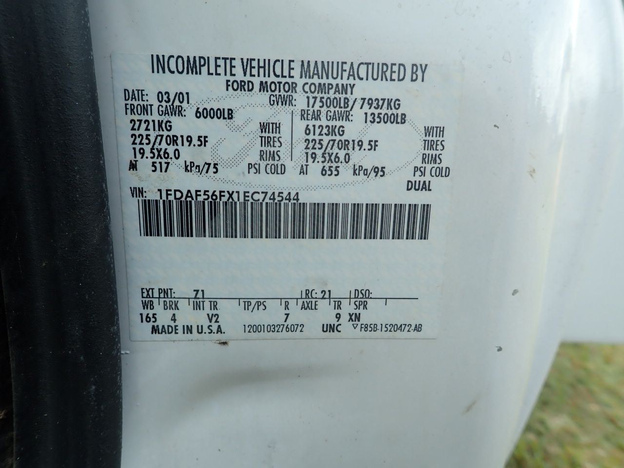 Vehicle ID Number: 1FDAF56FX1EC74544
