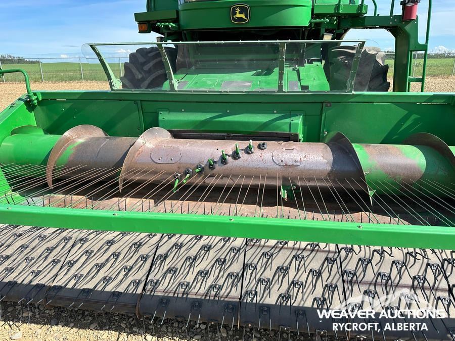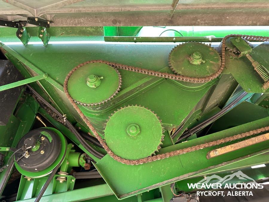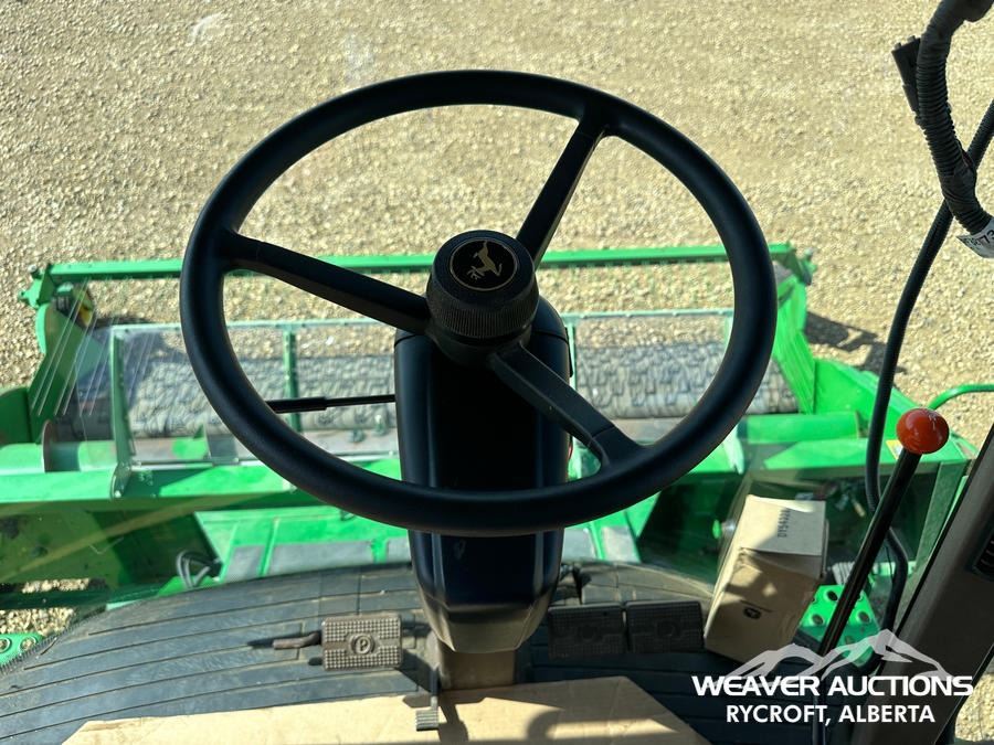 Specifications: AIR CONDITIONER, AIR RIDE SEAT, HYDROSTATIC DRIVE, REVERSER, VARIABLE SPEED REEL, AUTO HEADER HEIGHT CONTROL, FORE & AFT, HARVEST MONITOR SYSTEM, YIELD & MOISTURE SENSOR, GREENSTAR DISPLAY
