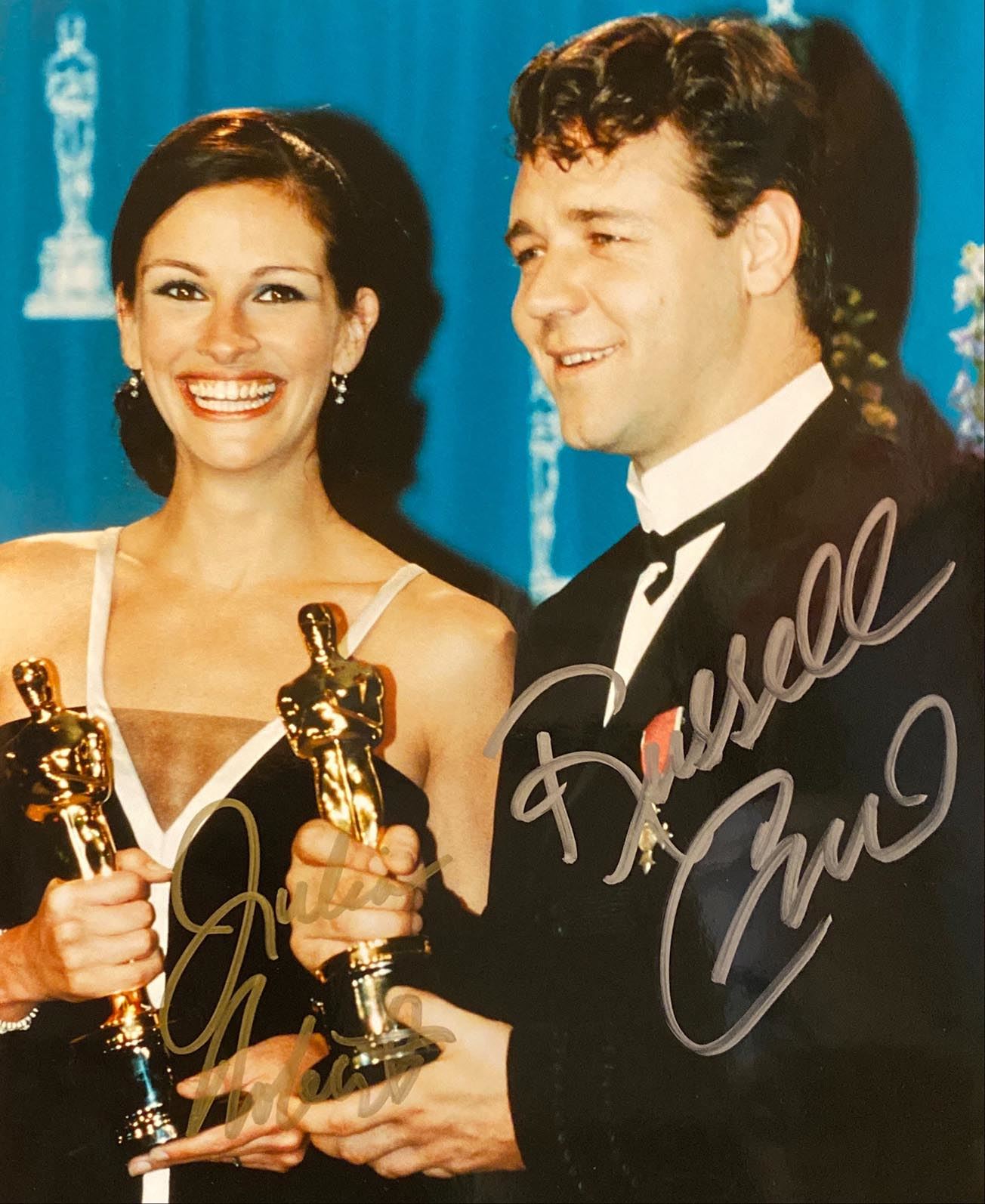 2001 Oscar Winners signed photo autographed by Russell Crowe and Julia Roberts. 8x10 inches