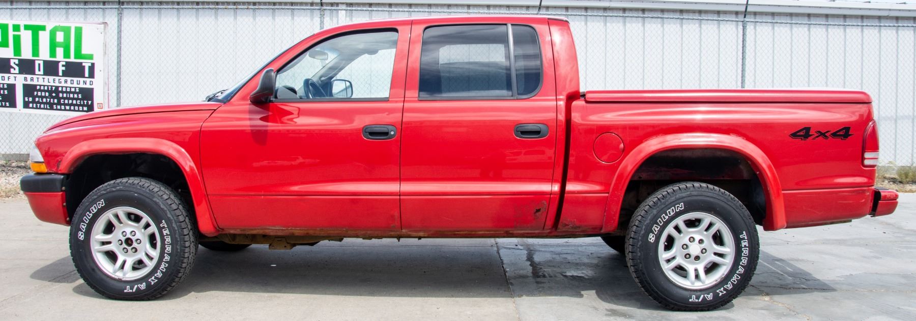 VIN: 1D7HG38NX3S252076 KM: 234,733 Engine: 8 CYLINDERS Color: RED FEATURES INCLUDE AIR CONDITIONING, CRUISE CONTROL, POWER DOOR LOCKS, POWER WINDOWS, AUTOMATIC TRANSMISSION, CD CHANGER (PLAYER), CLOTH SEATS, POWER MIRRORS, 4 WHEEL DRIVE, 4X4 CREW CAB, 4X4 NEEDS ATTENTION, ALL POWER OPTIONS, GOOD TIRES, DRIVERS SEAT BACK REST DOES NOT ADJUST, FRONT PASSENGER WINDOW DOES NOT GO DOWN, ALL BIDS SUBJECT TO BANK, BAILIFF, OR OWNERS APPROVAL. MUST BE 18 OR OLDER TO BID OR PURCHASE. ALL VEHICLES ARE SOLD AS IS.ALL ITEMS MUST BE REMOVED WITHIN 5 DAYS OF SALE