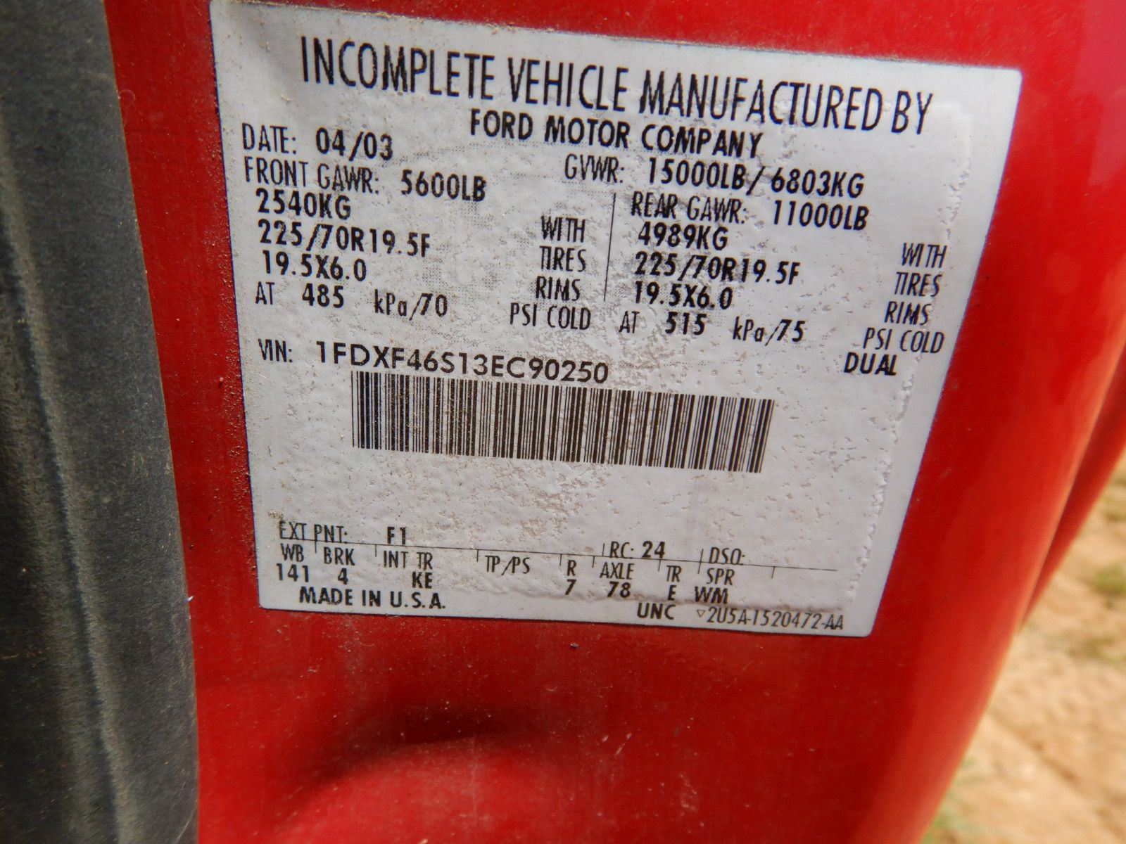 Vehicle ID Number: 1FDXF46S13EC90250