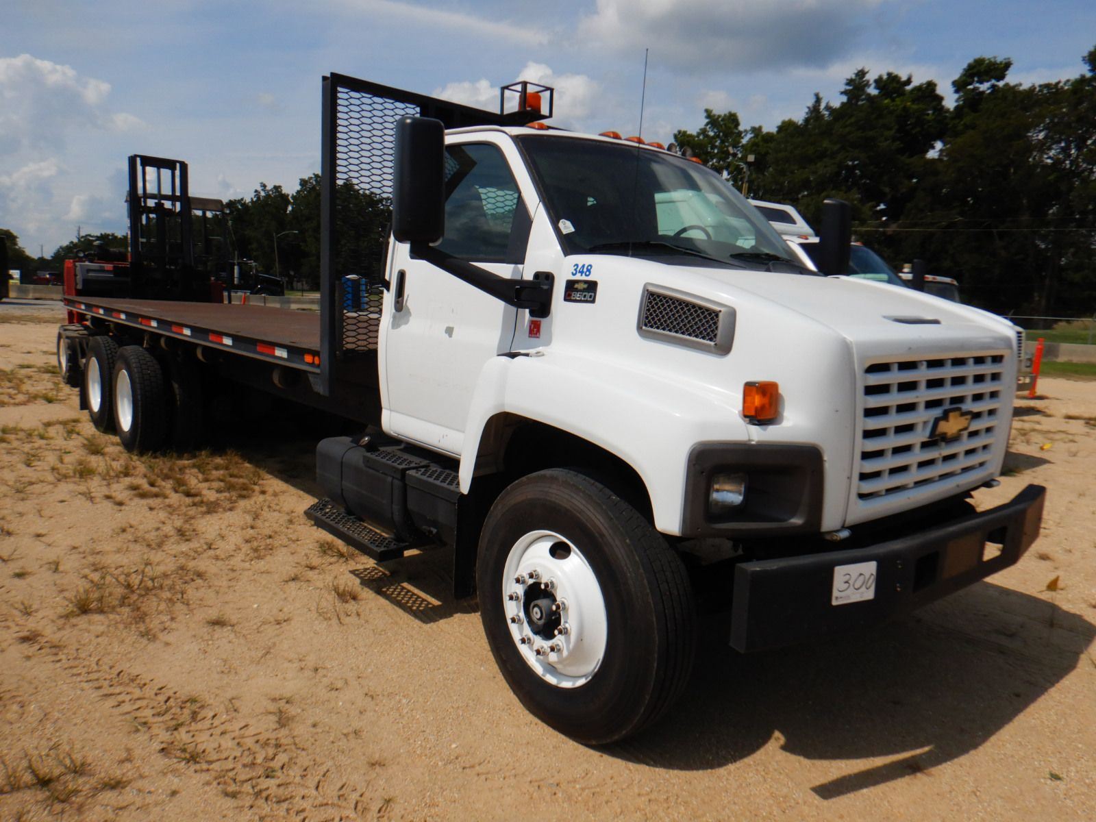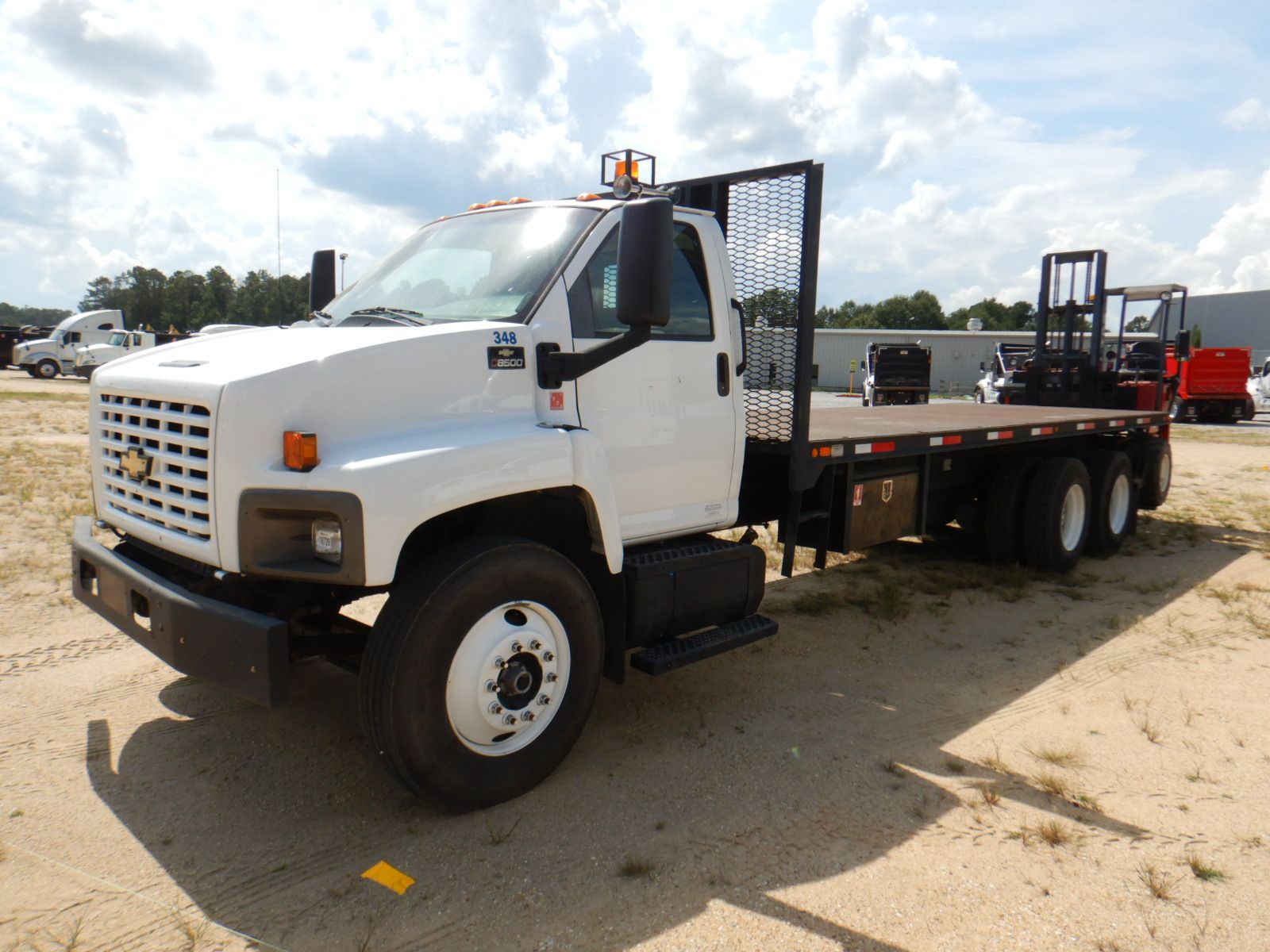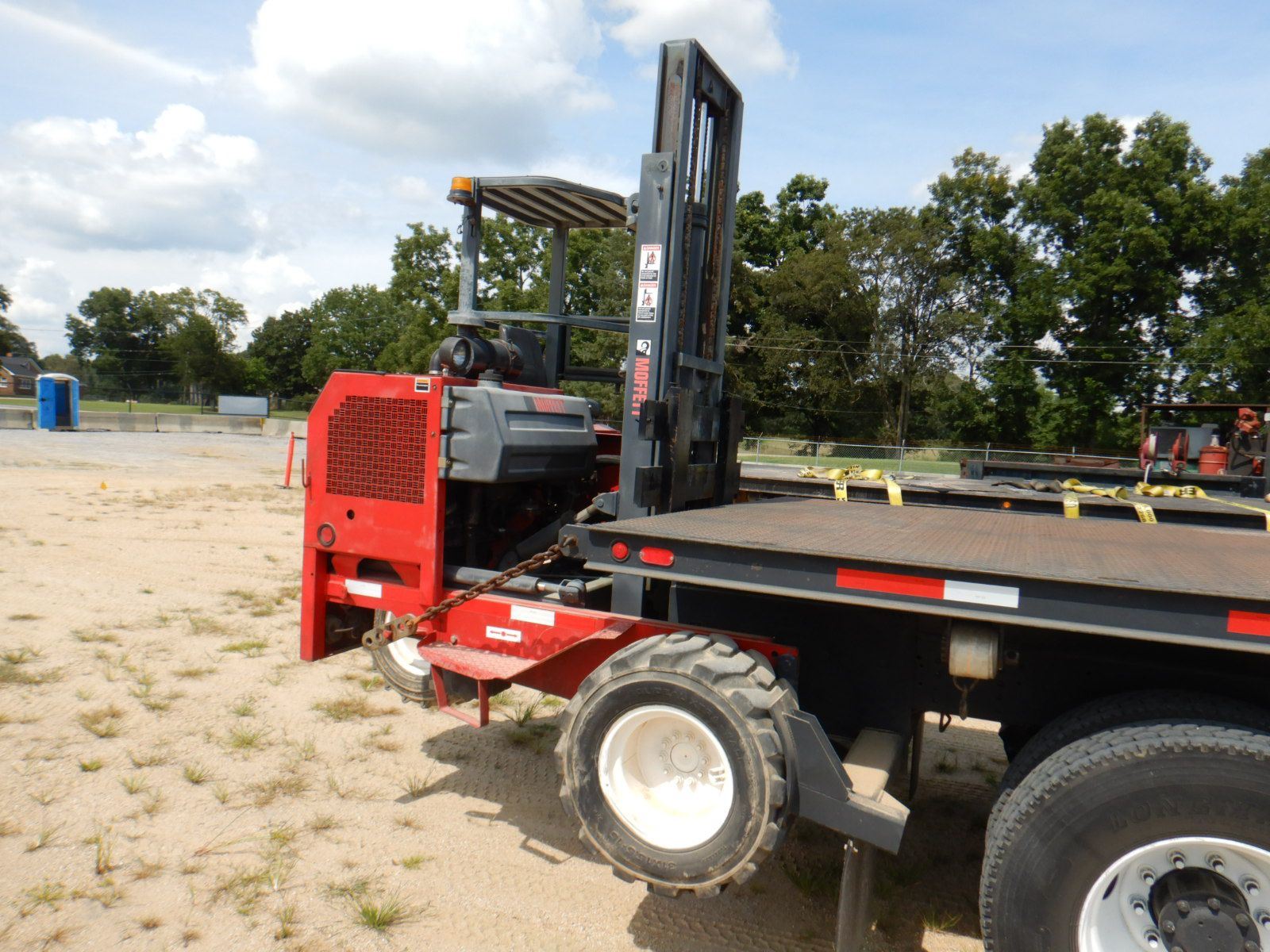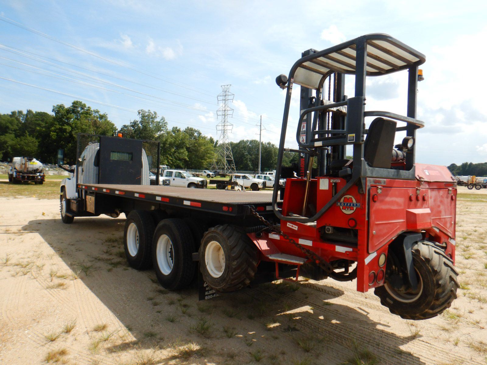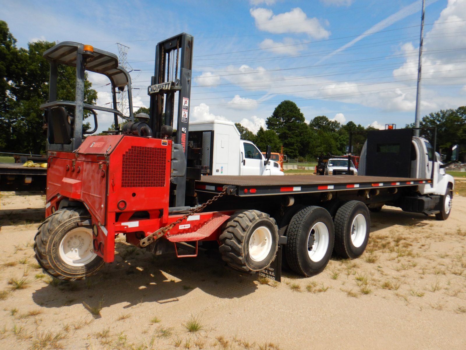T/A, Cat C7 engine, 8LL trans, 40K rears, 13,200 lb. front, 24' flatbed body, forklift kit, (Moffett M5500 Piggyback Forklift), S/N D109367, 5,500 lb. capacity, standard mast, canopy