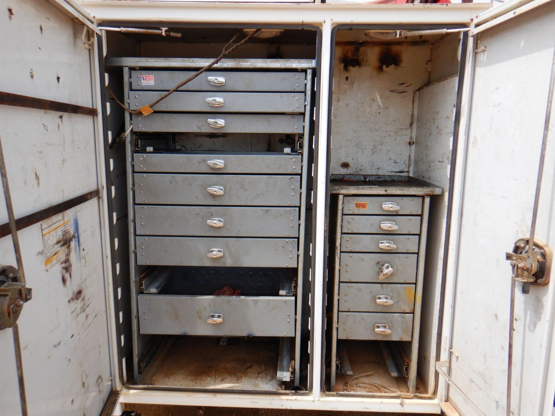 ext cab, Cat C7 engine, manual trans, IMT body, 10,500 lb. crane, hyd air compressor, (Remote in Security Office)