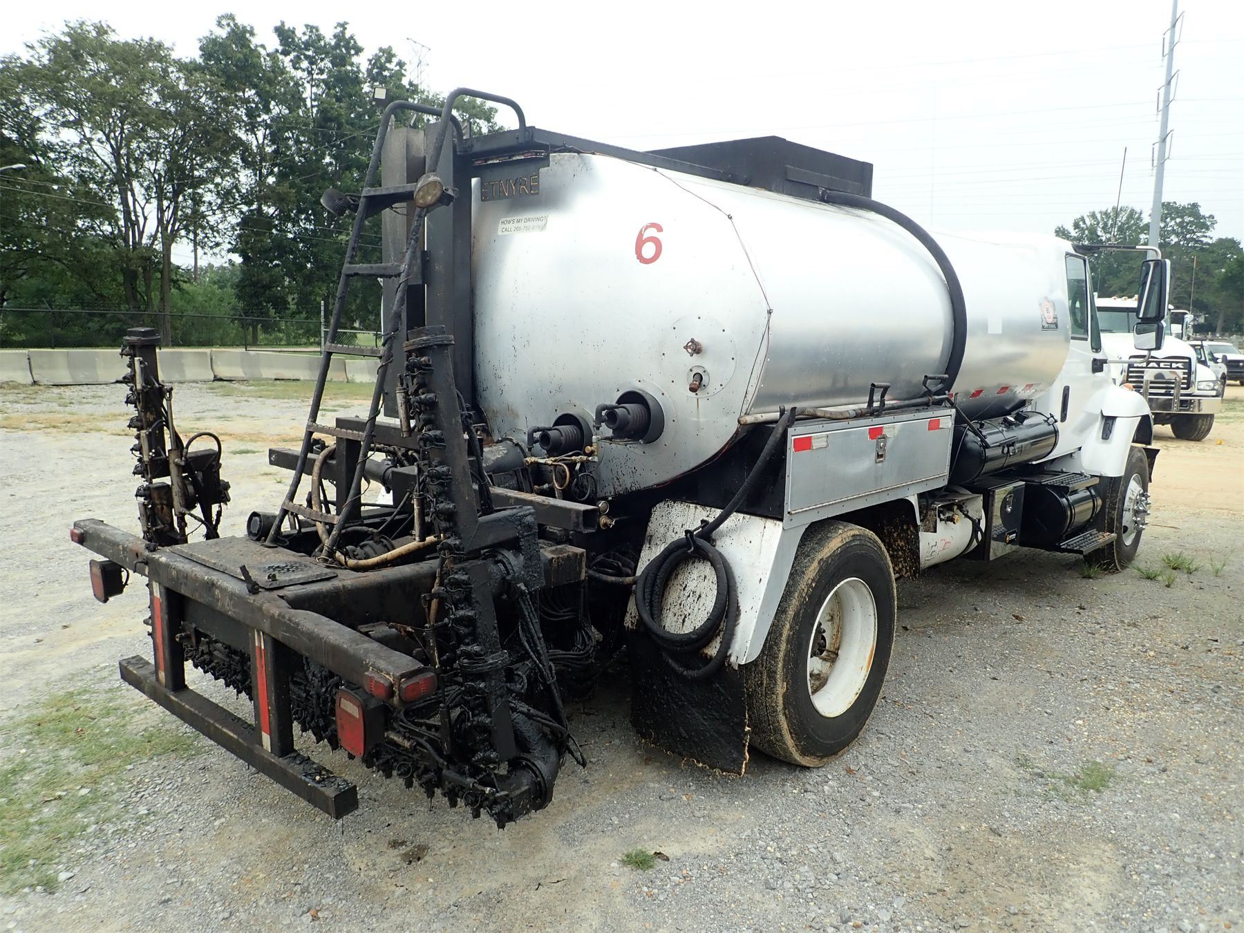 S/A, Int DT466 engine, 5&2 speed trans, 33,000lb. GVWR, air brakes, Etnyre Gent II body, in-cab controls, 16' spray bar