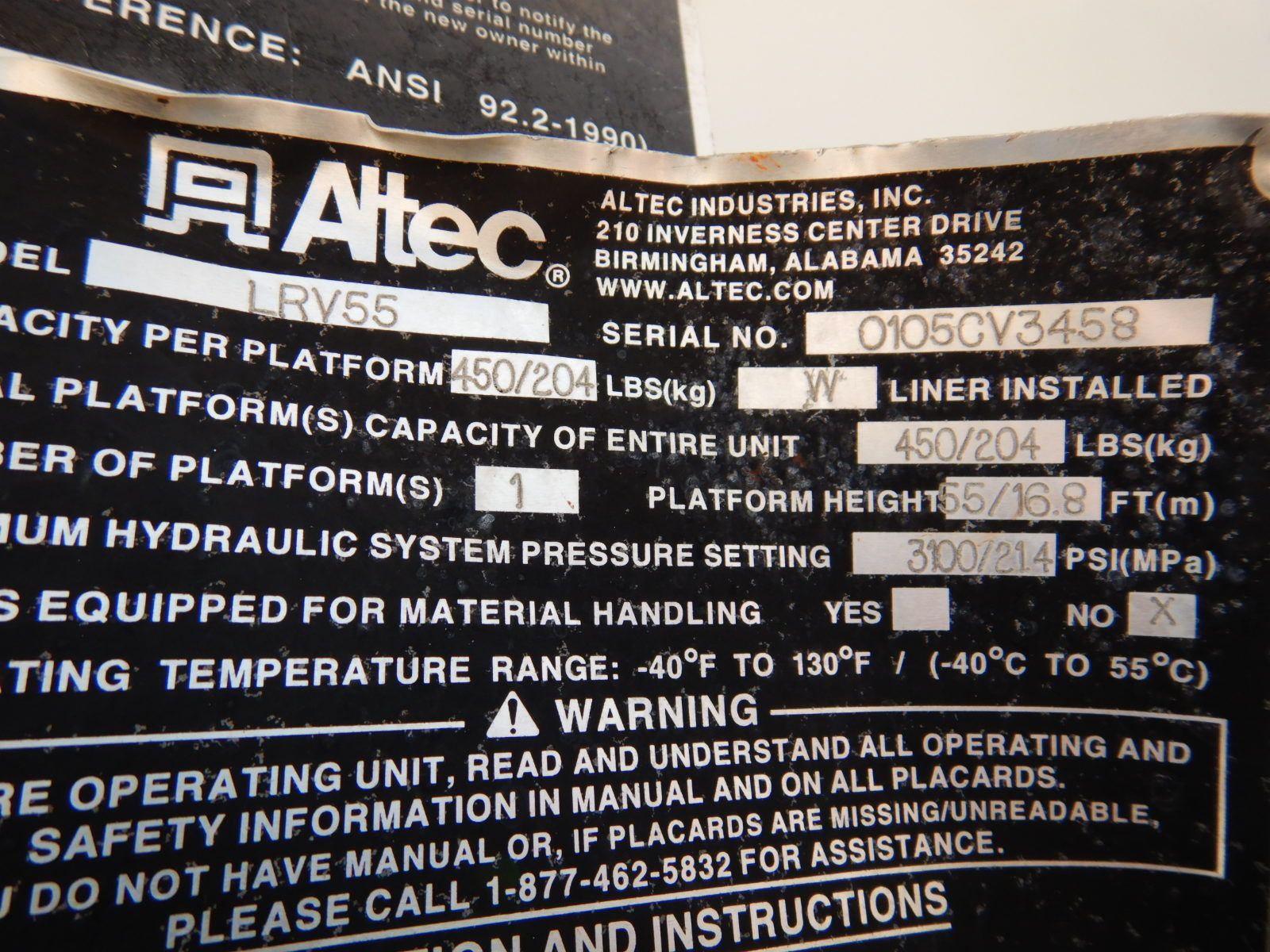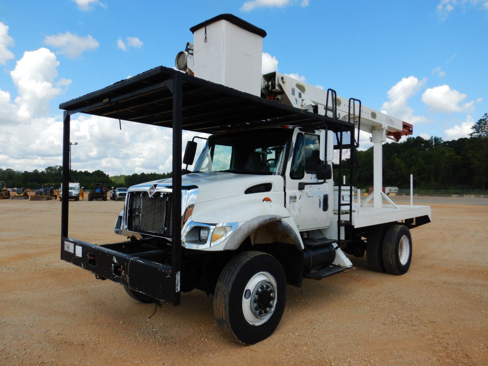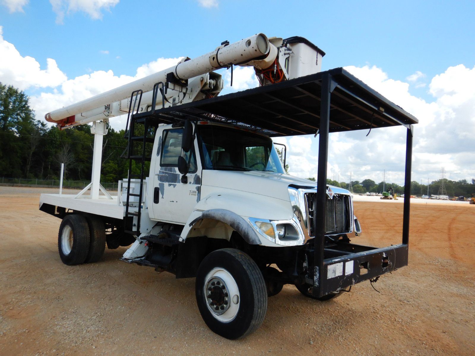 4x4, S/A, Int DT466 diesel, Allison A/T, flatbed, Altec LRV55 bucket, 450 lb. capacity, 55' height, outriggers