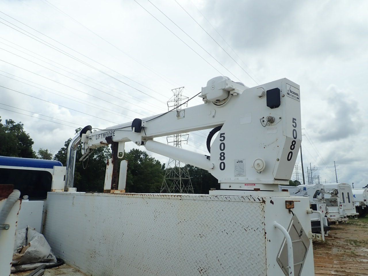 Cummins ISC engine, 6 speed trans, Monroe body, Liftmoore 5080 crane, air compressor