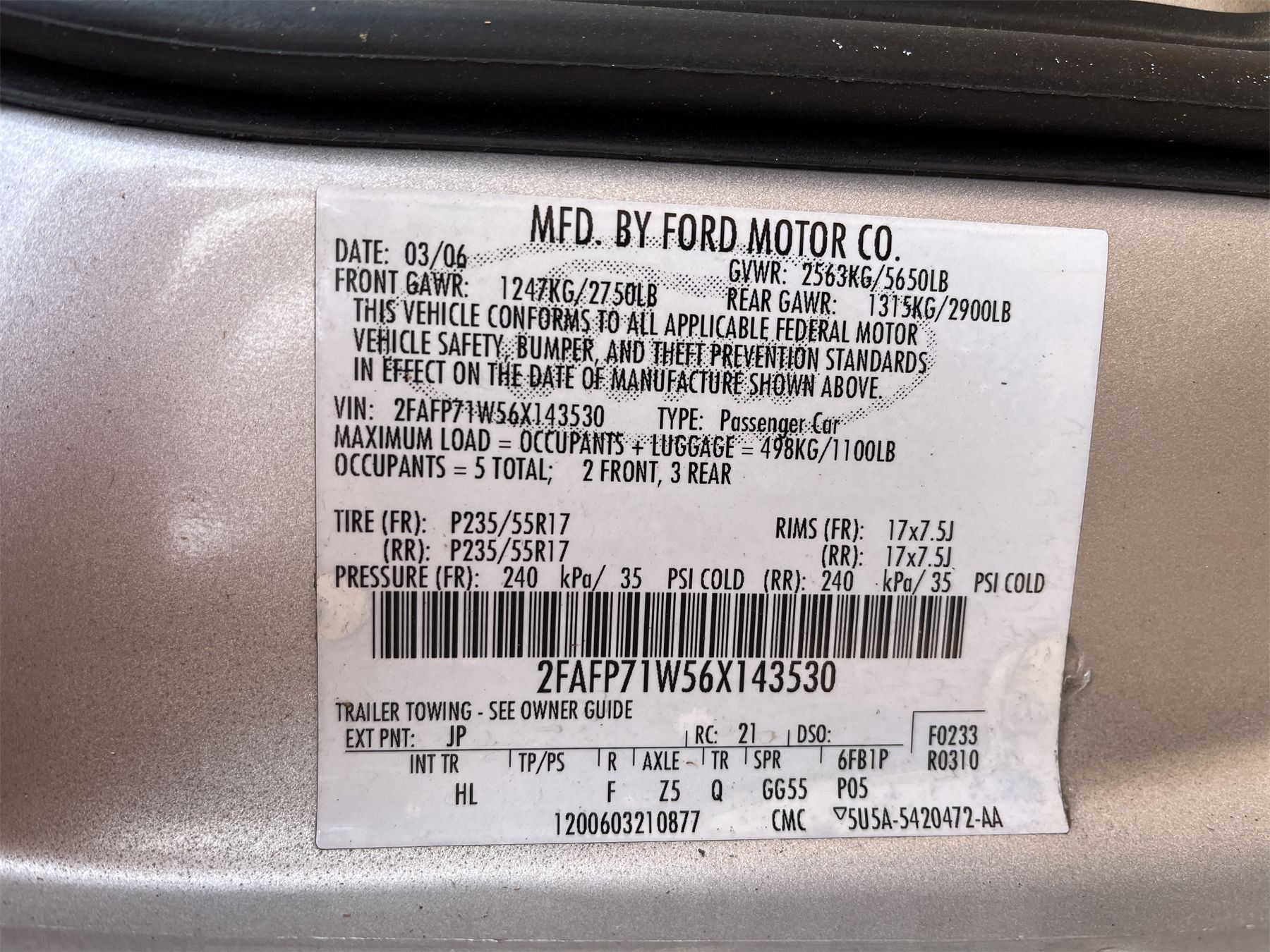 Vehicle ID Number: 2FAFP71W56X143530