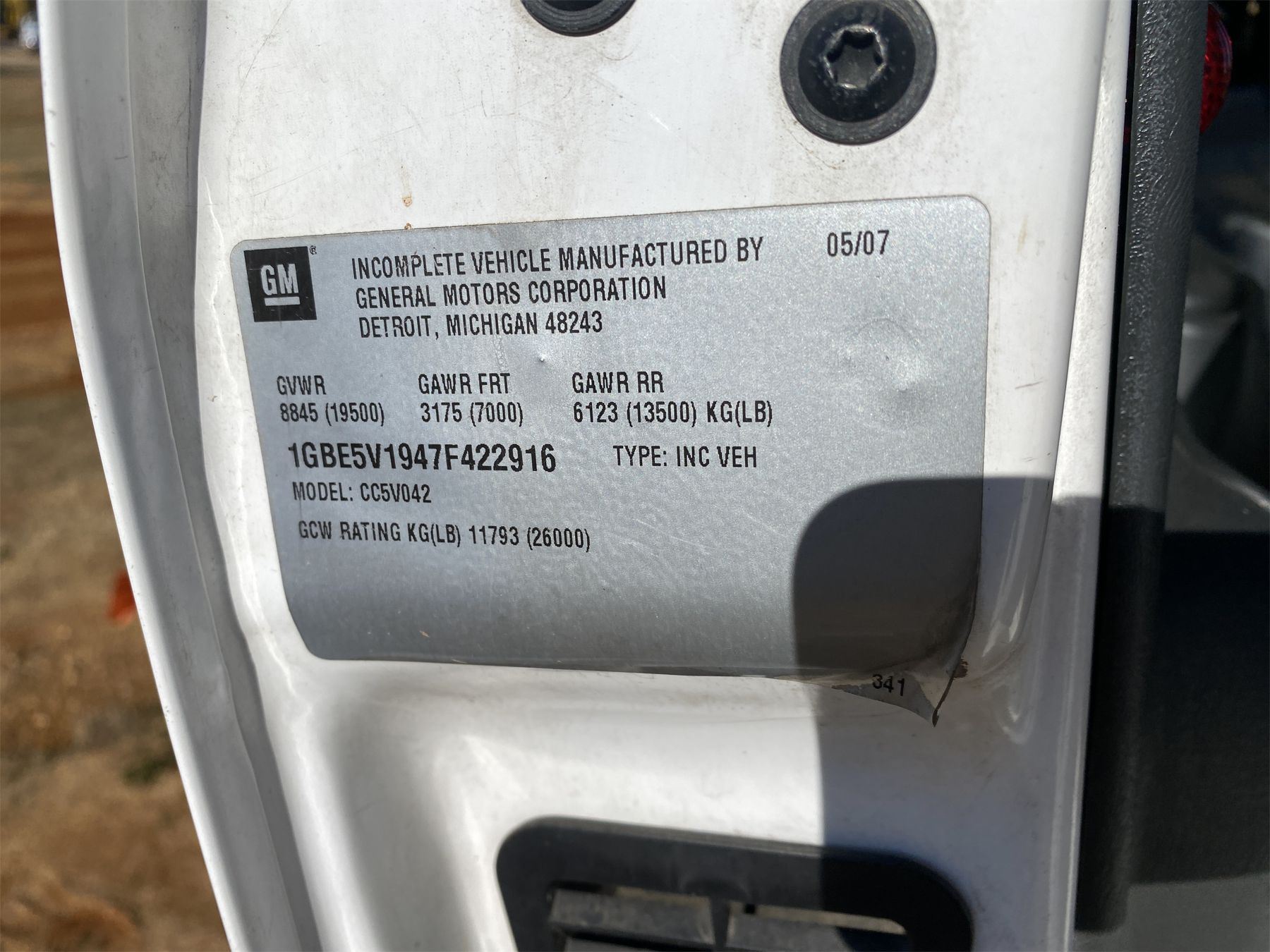 Vehicle ID Number: 1GBE5V1947F422916